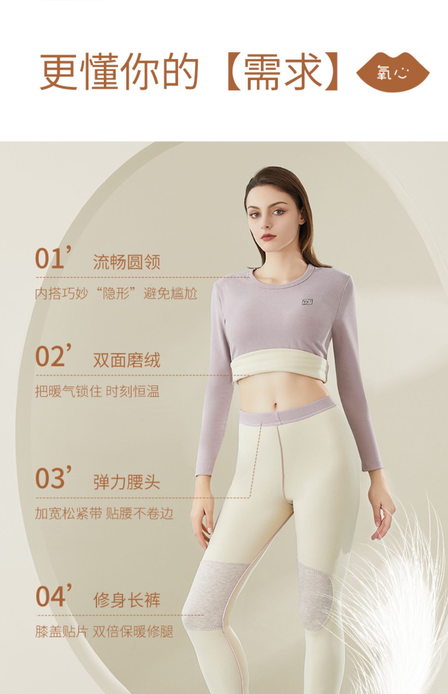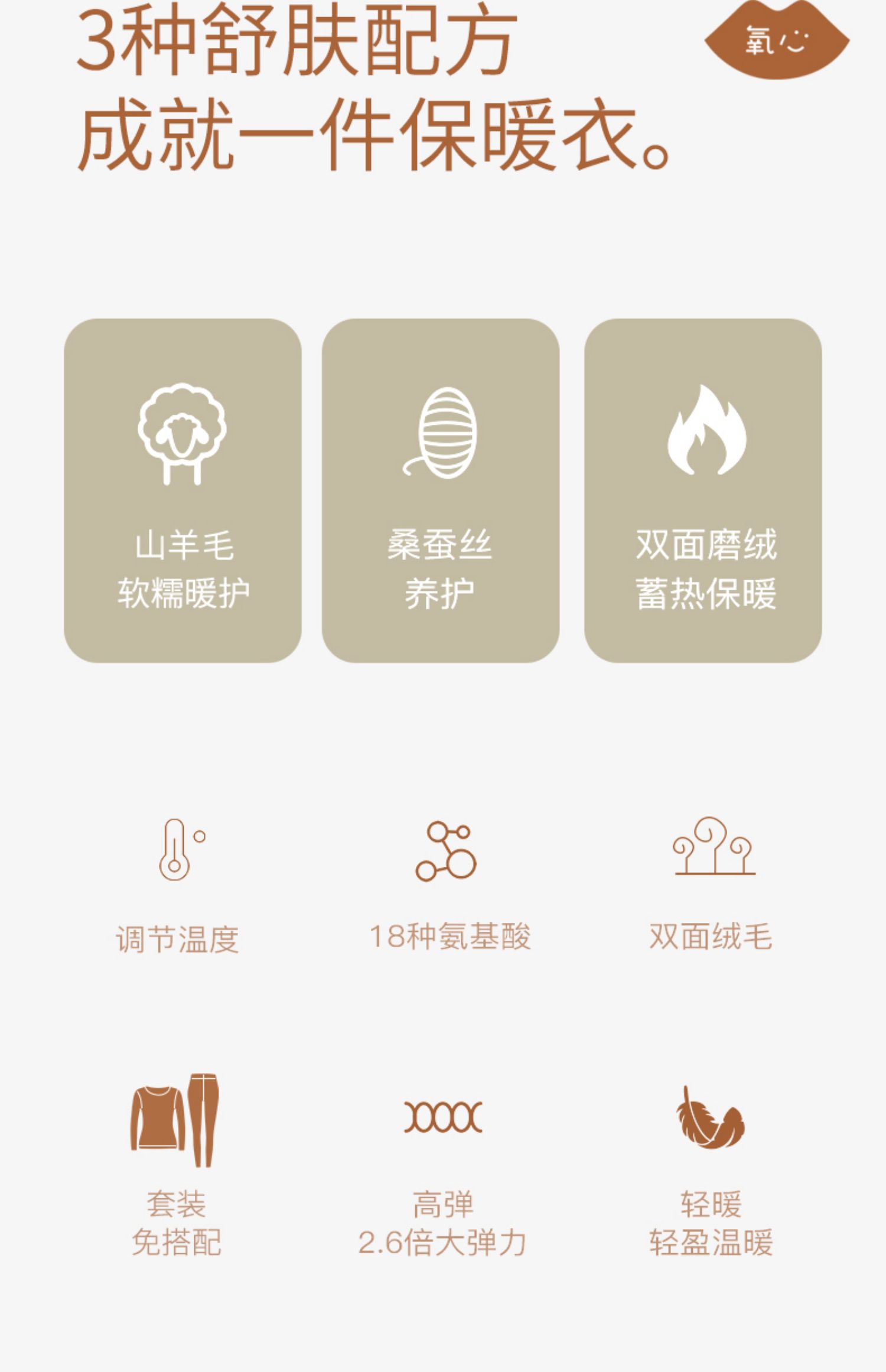 商品介绍:kissy氧心羊绒保暖无痕内衣女套装