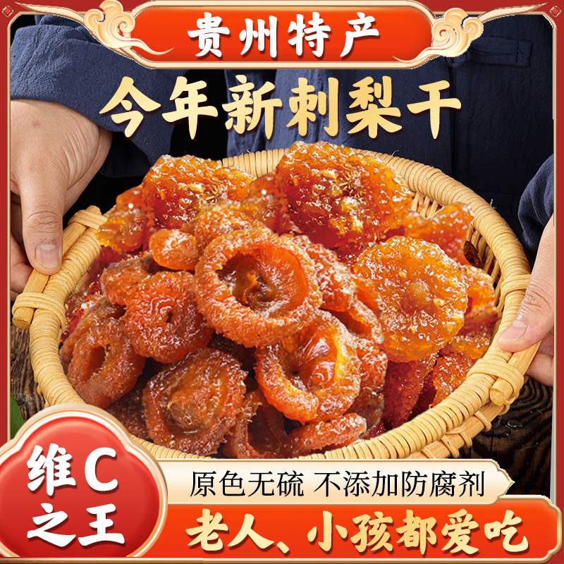 商品简介:3袋*80g到手17.9元,贵州刺梨干,富含大量维生素c,健康新选择,正宗果脯零食,纯天然滋补品,来自贵州高原的山野珍果~~