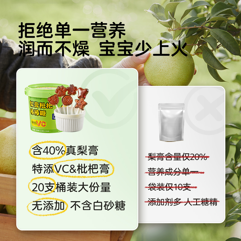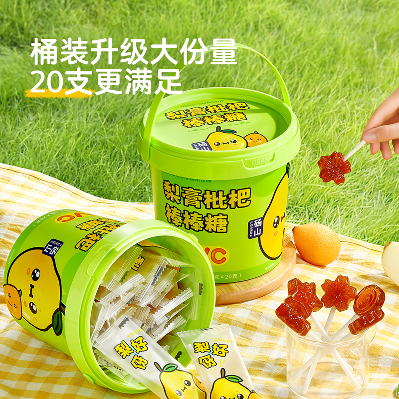 商品介绍:【亏本冲量】梨膏枇杷棒棒糖20支/桶装!