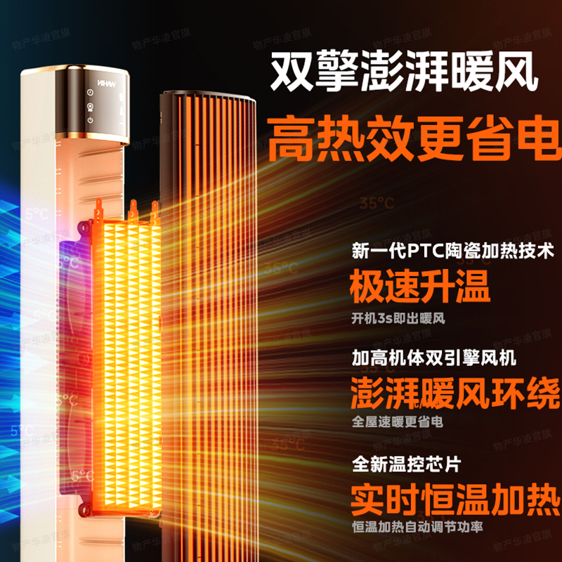 商品介绍:美的出品华凌取暖器2024新款加高家用暖风机