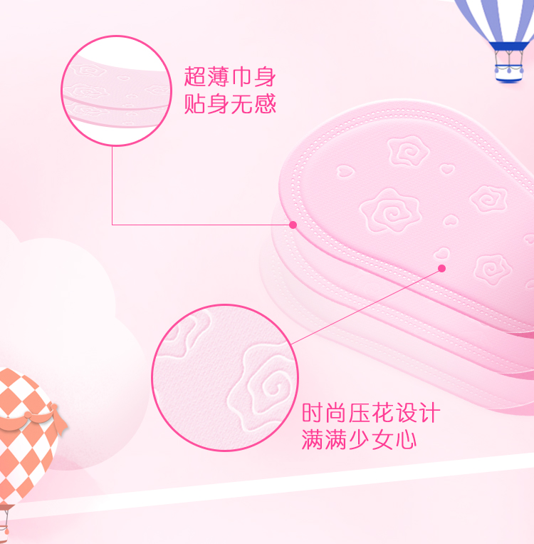 商品简介:【跨店满300-30】疯狂大促!绵柔呵护!全新透气底膜,原离闷热!超薄巾身,贴身无感!时尚少女设计!满满少女心!速囤!