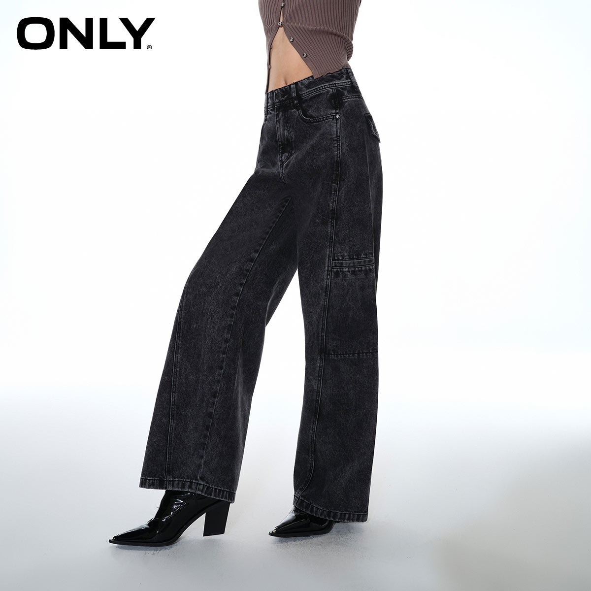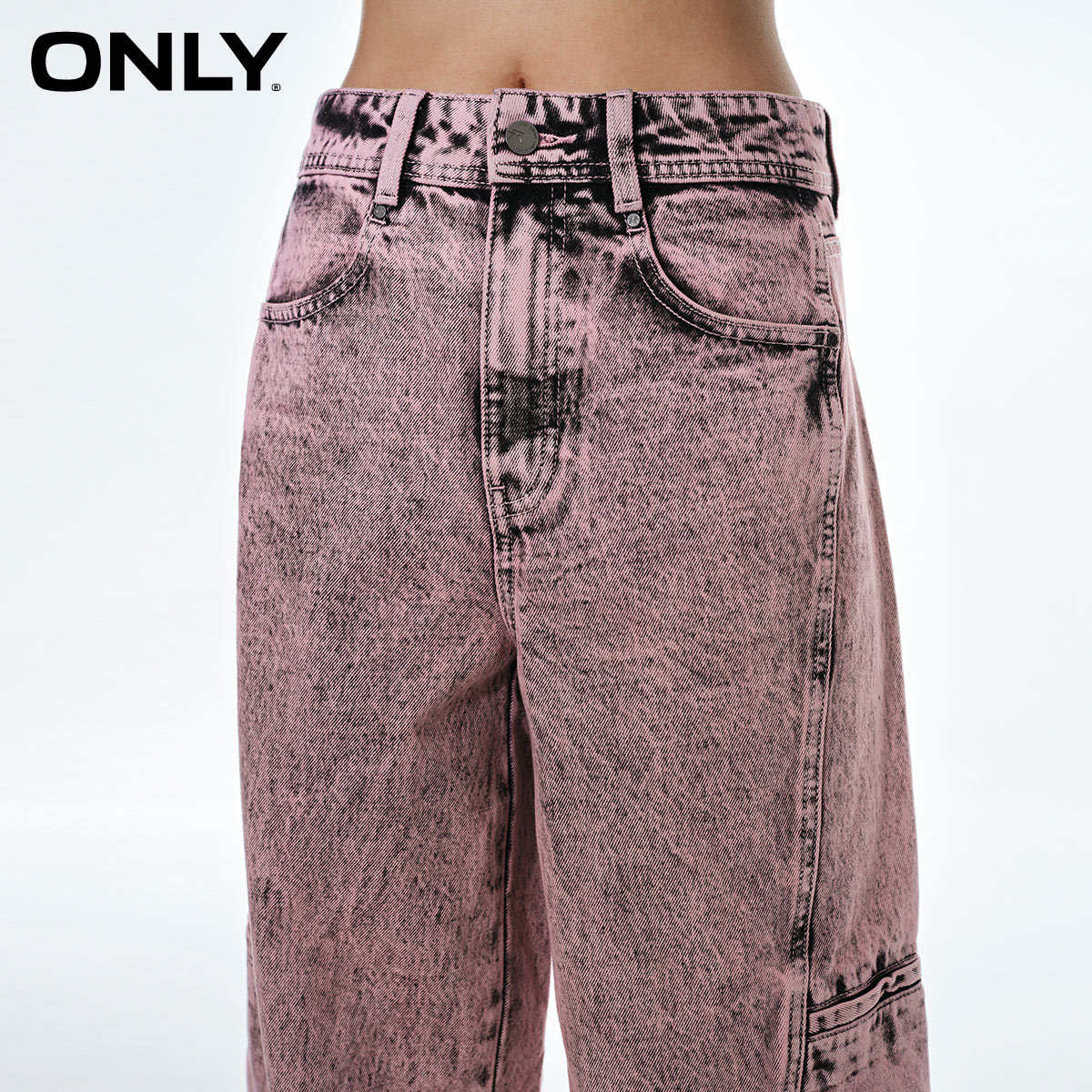 商品名称:ONLY秋季休闲百搭工装口袋高腰阔腿牛仔裤女|123432081