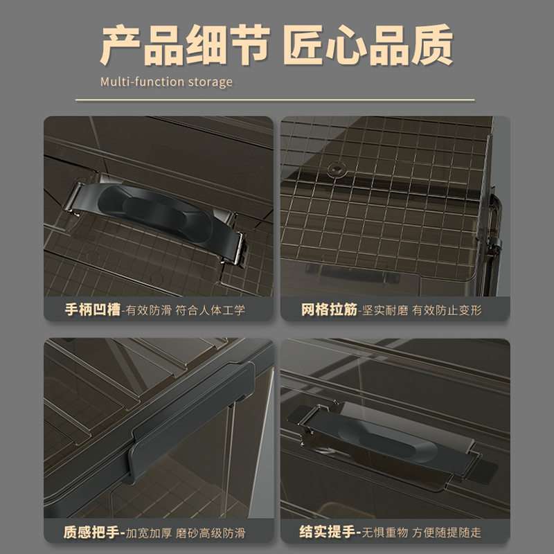 商品名称:大容量收纳箱家用透明整理箱衣服玩具储物箱黑色车载收纳盒带提手