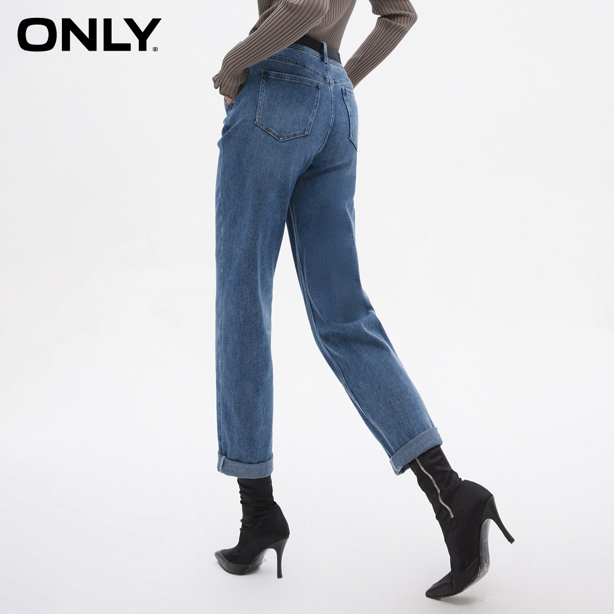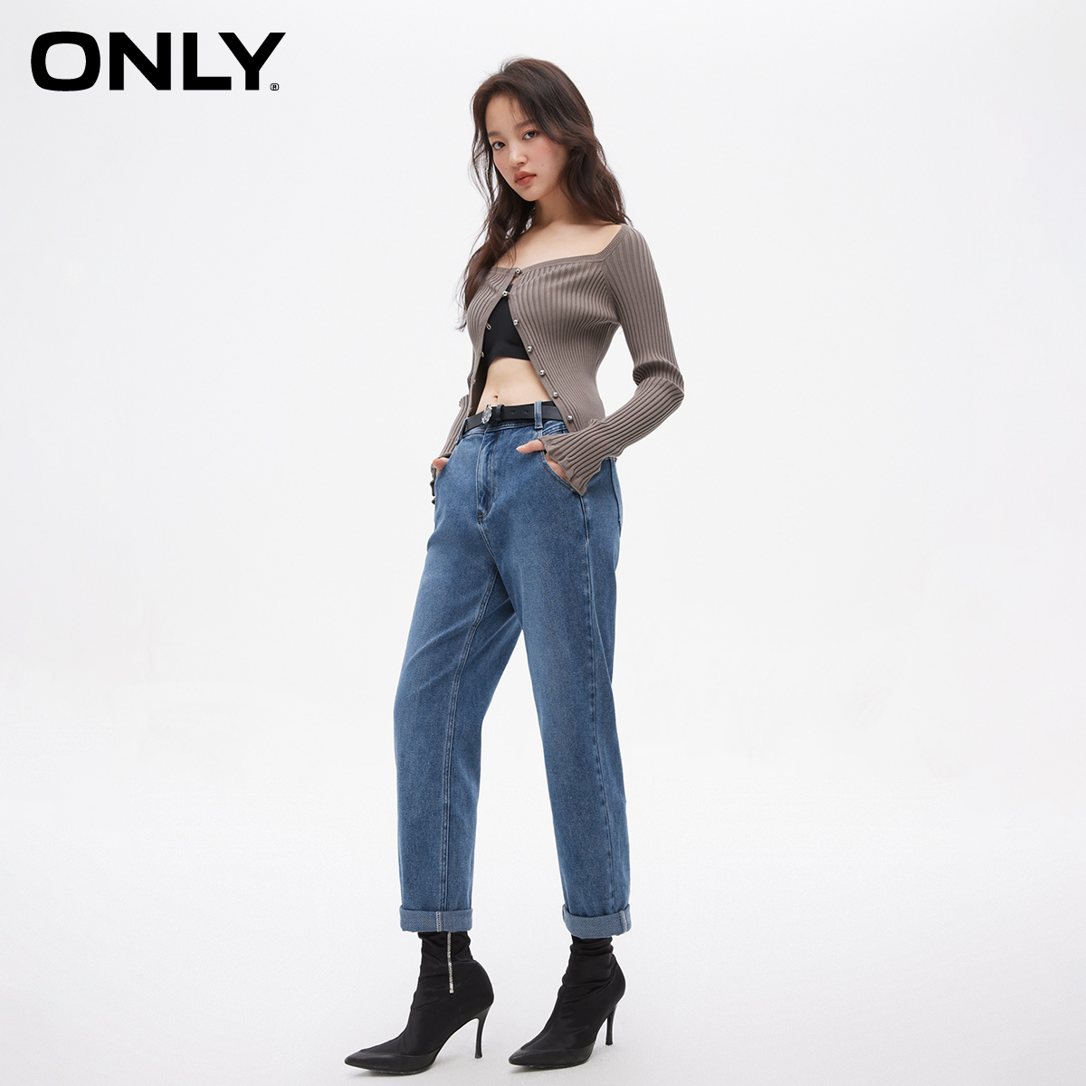 商品名称:ONLY2024秋季新款简约通勤卷边高腰男友裤九分牛仔裤女|124149017