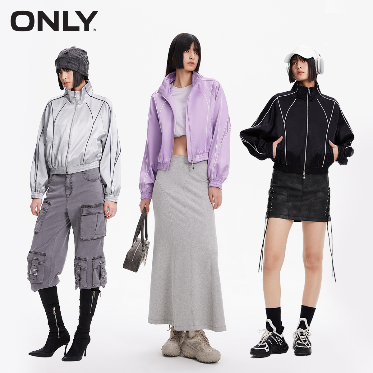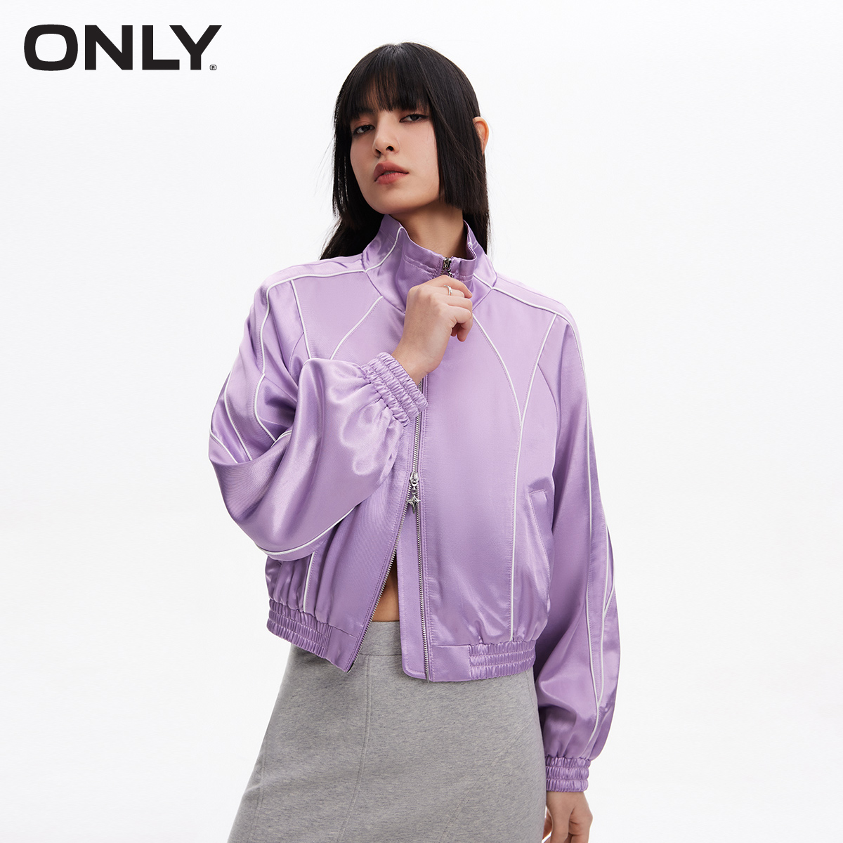 商品名称:ONLY2024秋季新款时尚明线装饰插肩袖宽松短款外套女|124136012