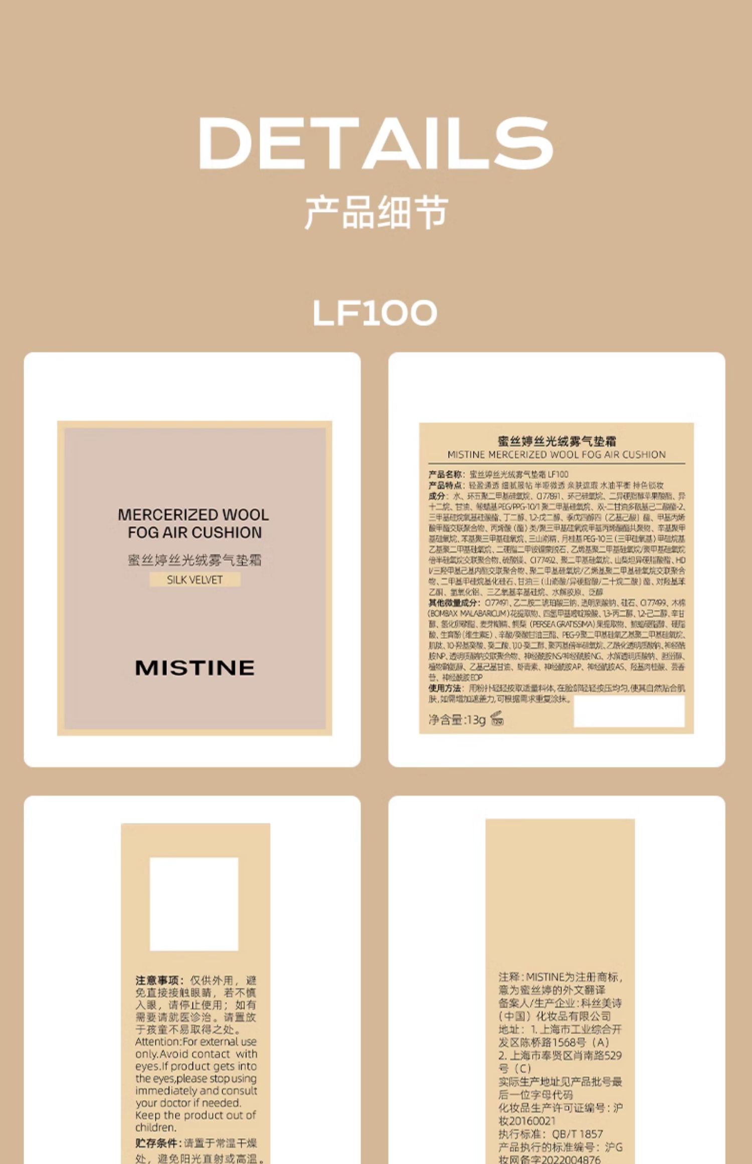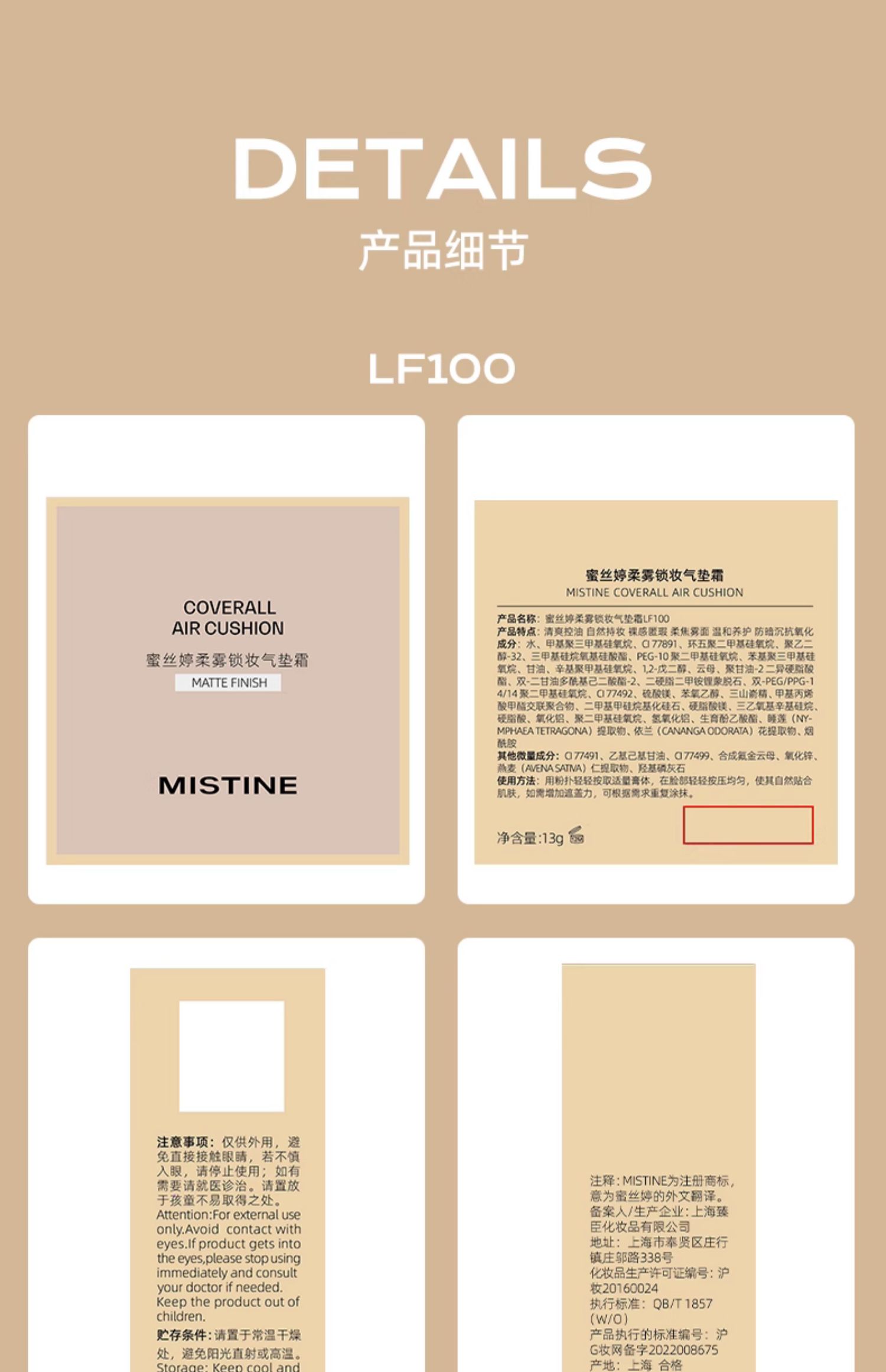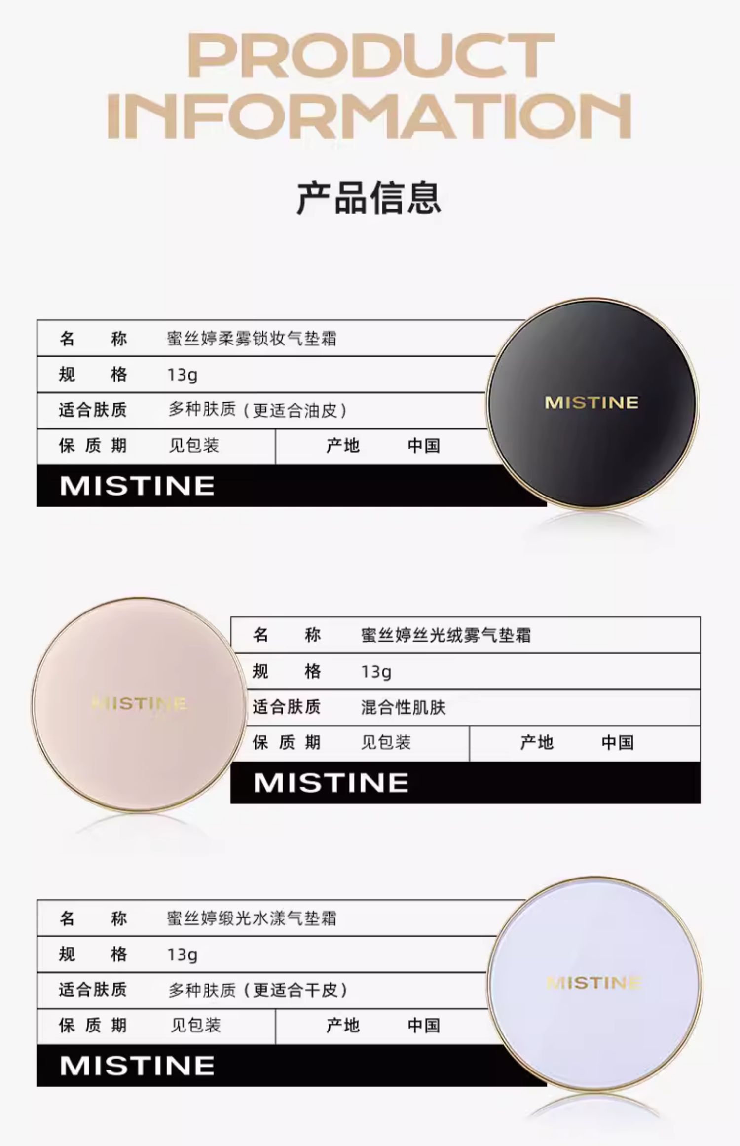 商品名称:Mistine气垫bb霜女混油干皮蜜丝婷粉底液控油遮瑕持久不脱妆吸油