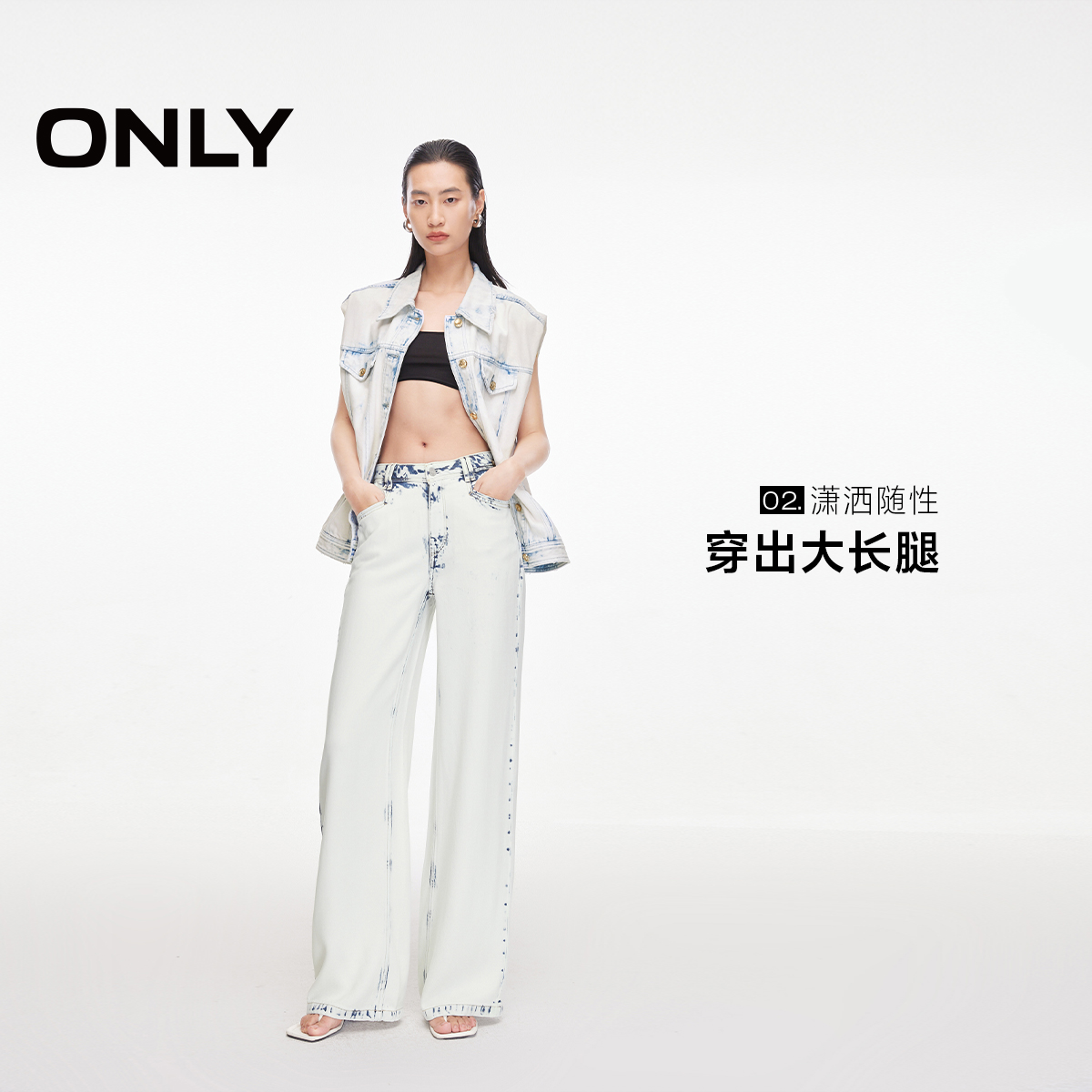 商品名称:ONLY2024夏季新款时尚垂坠透气高腰宽松直筒裤牛仔裤女|124232004