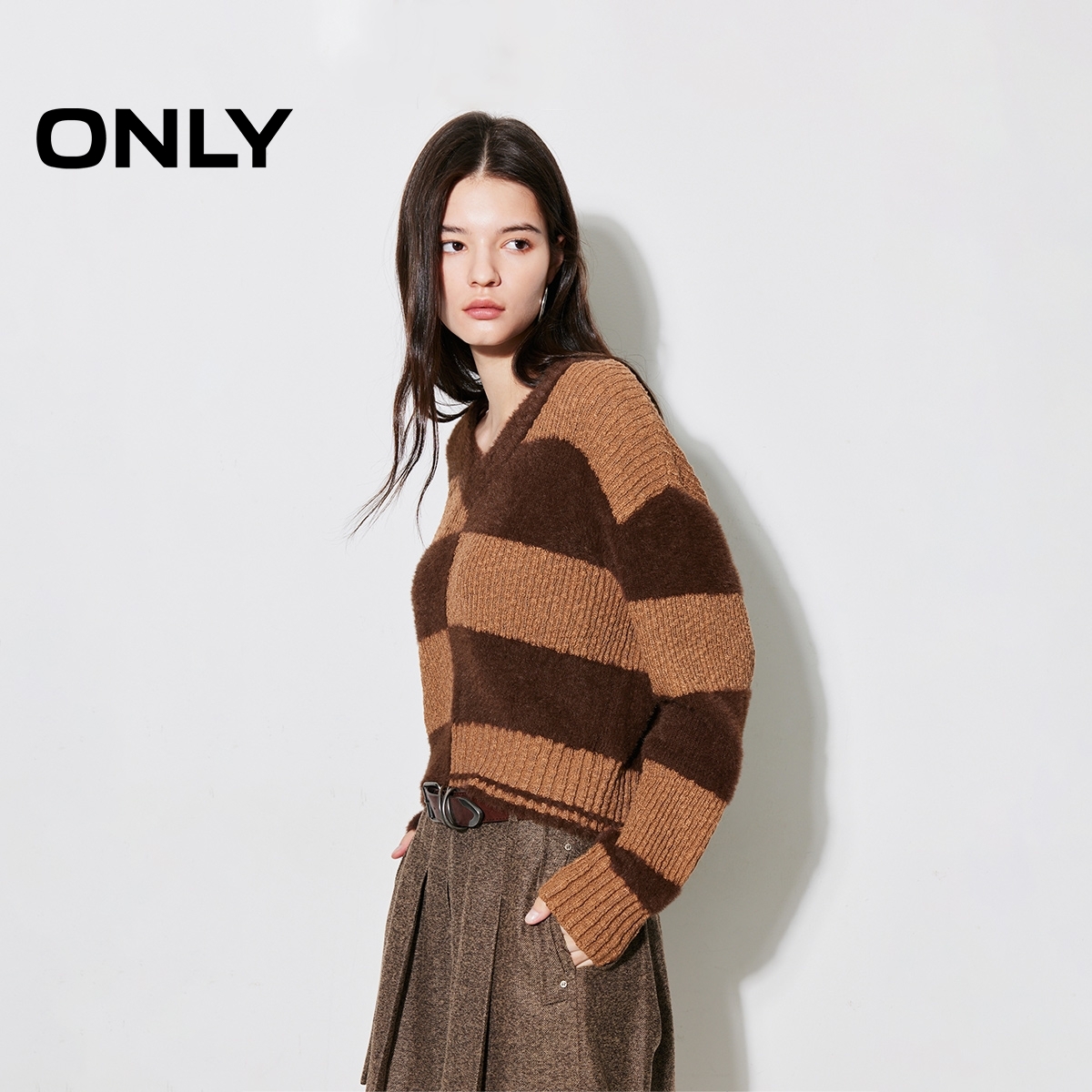 商品介绍:ONLY2024冬季新款宽松显瘦V领长袖针织衫