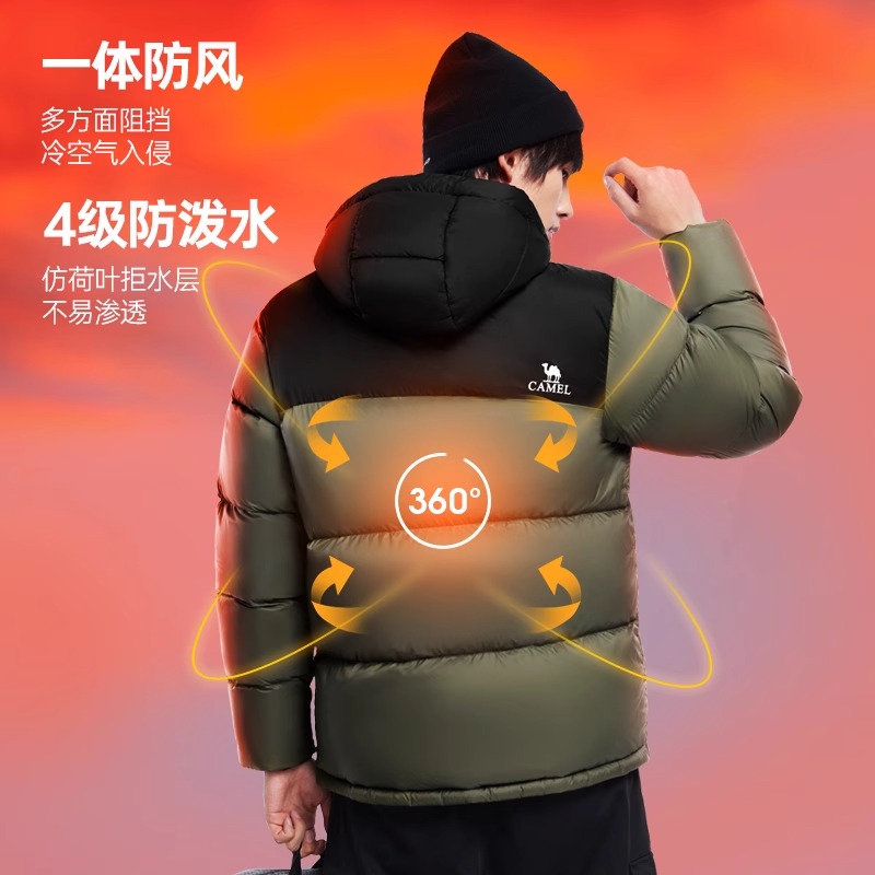 商品简介:【拍1389选项,凑单到手357!】骆驼官旗面包羽绒服!情侣款的,线下起码上千块!!充绒量十足!!90%含绒量!甄选白鸭绒!4级防水,让你度过这个寒冬!