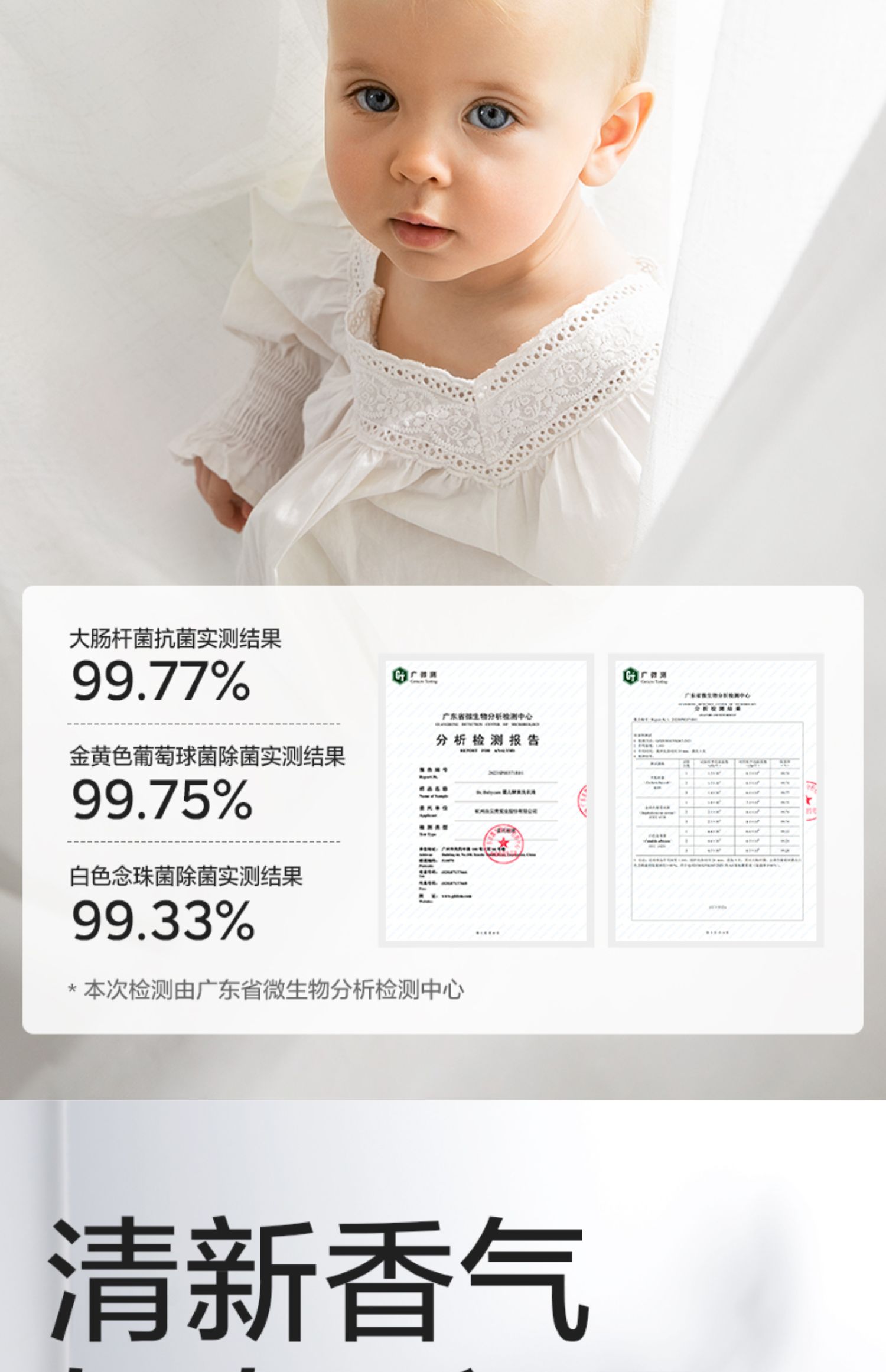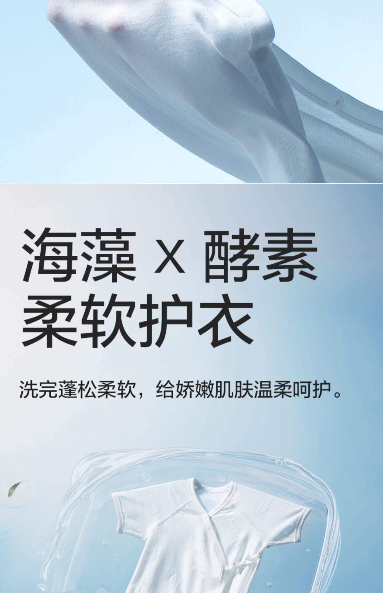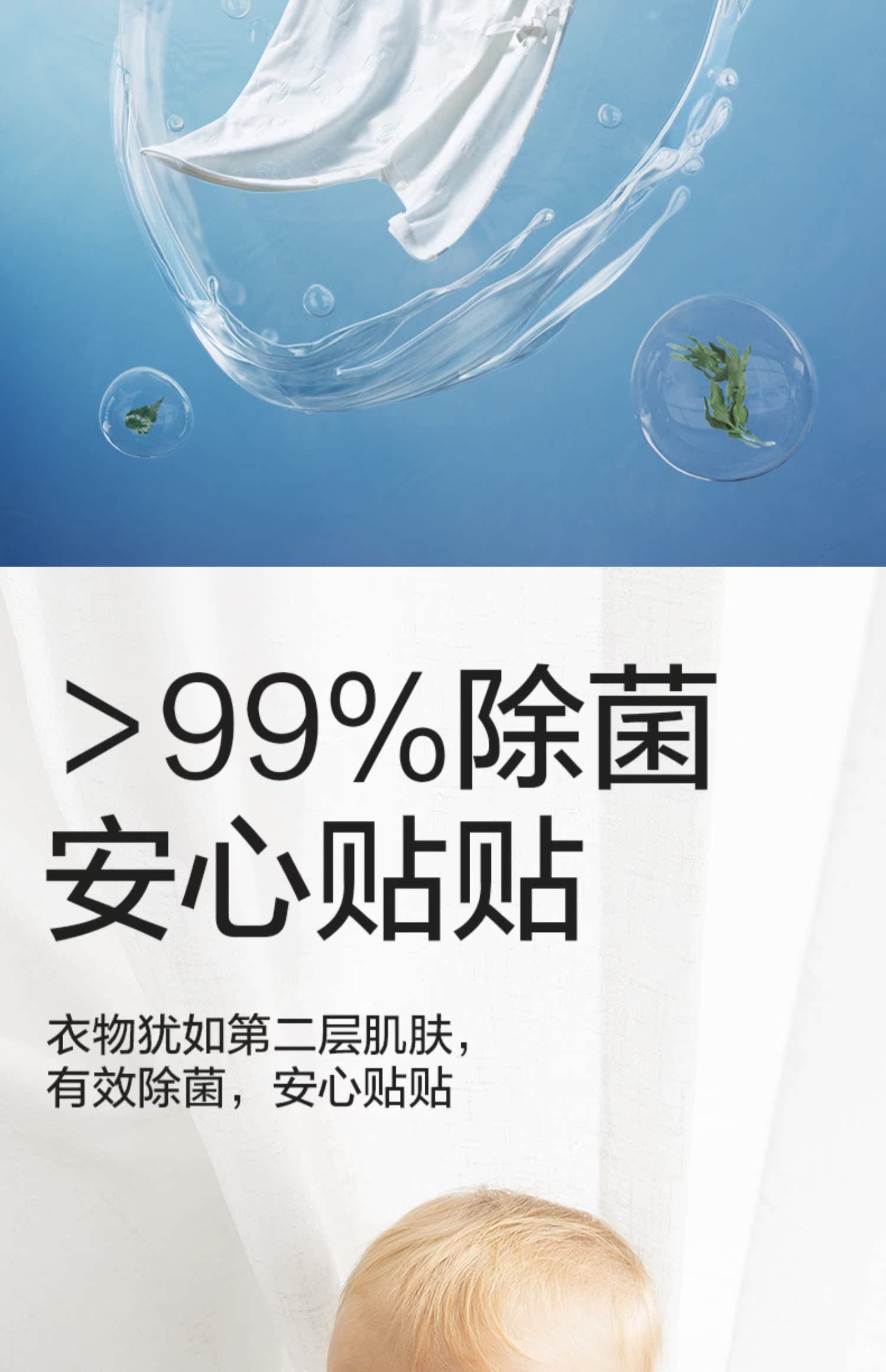 商品简介:99%长效安全抑菌,保护娇嫩肌肤不过敏,蛋白酵素,倍速瓦解污渍,无风险添加剂,贴身衣物放心洗,婴幼儿易漂洗配方,稍稍过水,一冲即净~