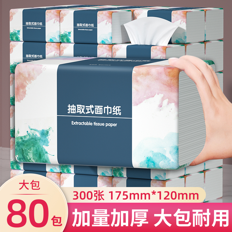 商品名称:80大包400张纸巾抽纸家庭实惠餐巾纸卫生卷纸整箱批面巾纸厨房纸