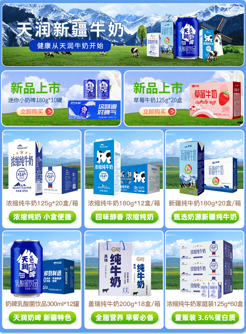 商品名称:天润新疆浓缩纯牛奶儿童学生早餐奶整箱125g*20盒