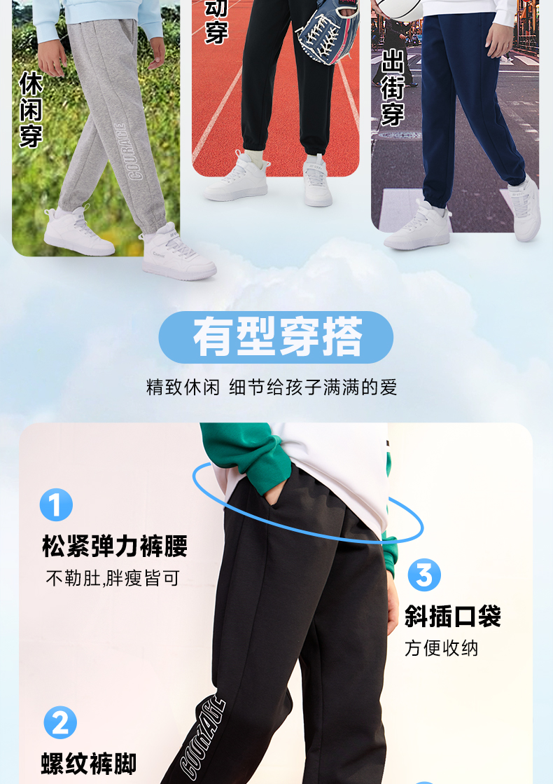 商品名称:361童装男童裤子秋冬新款儿童运动裤中大童秋季加绒纯棉女童长裤