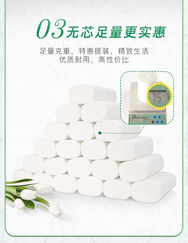 商品介绍:心相印茶语系列无芯卷纸75g*10卷