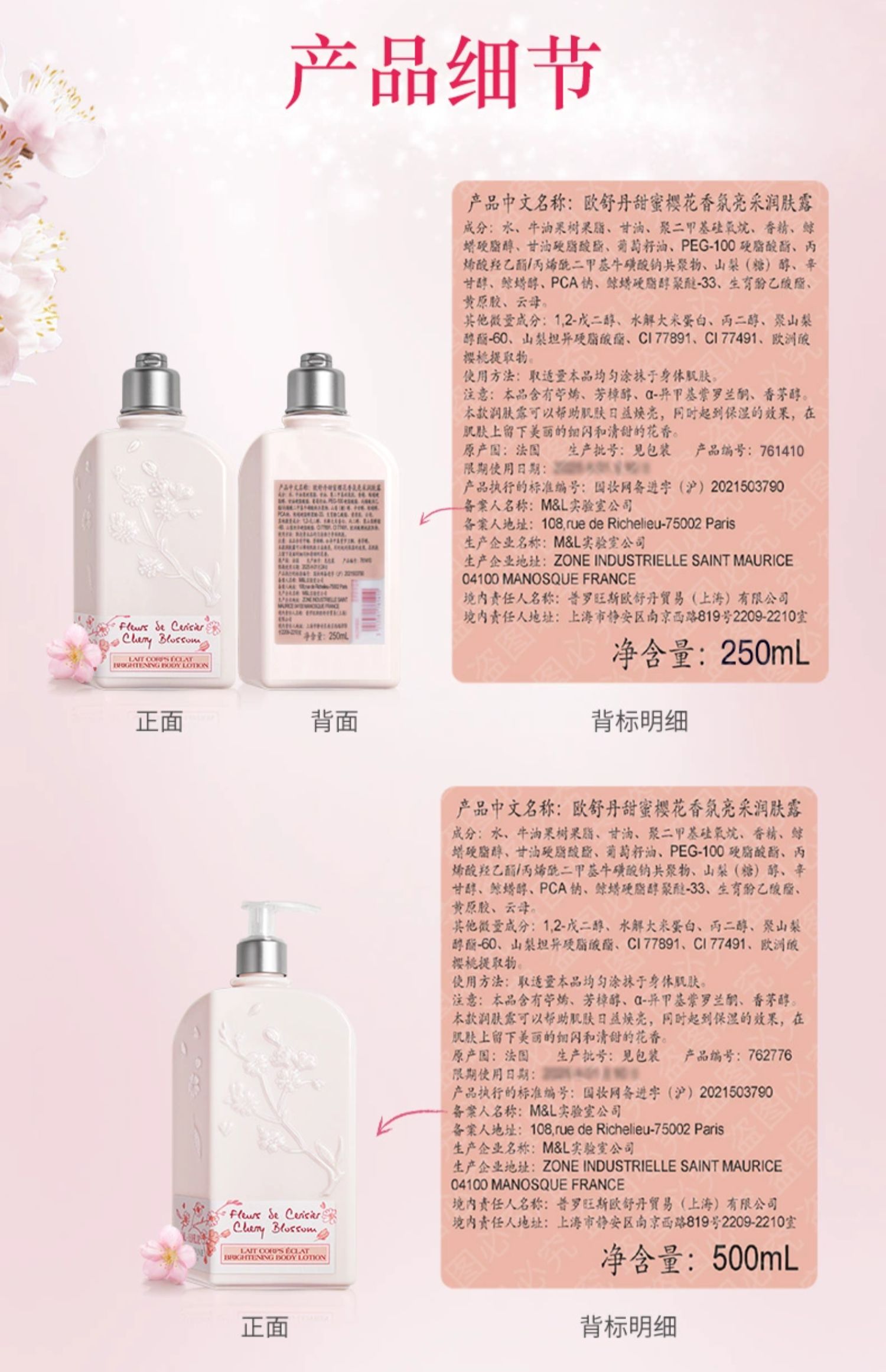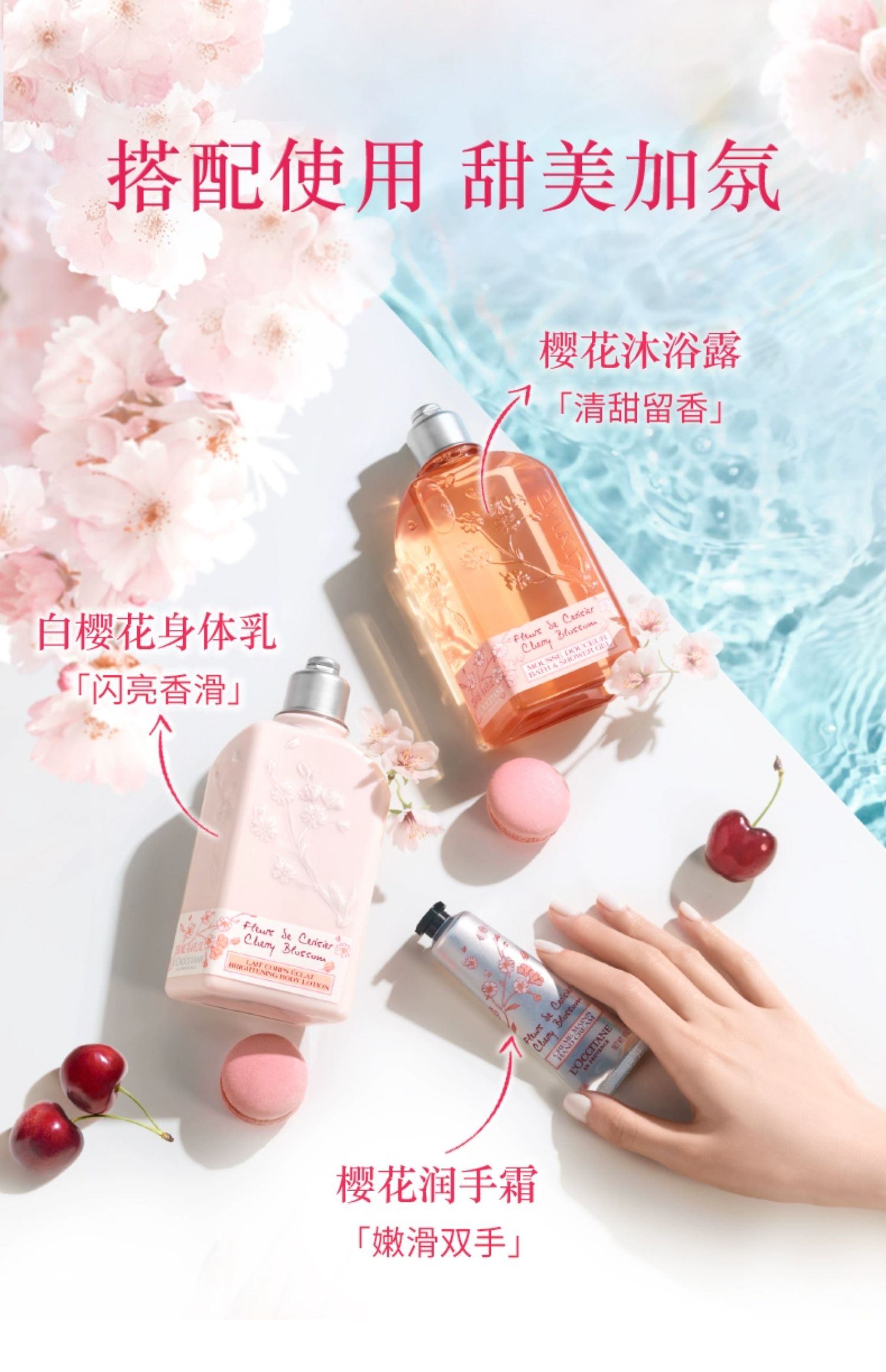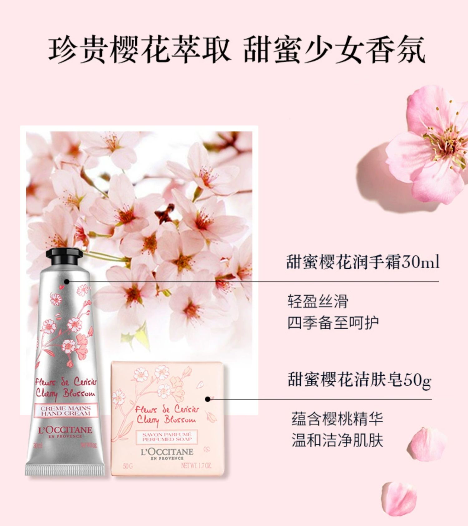 商品介绍:欧舒丹樱花沐浴身体乳手霜套装