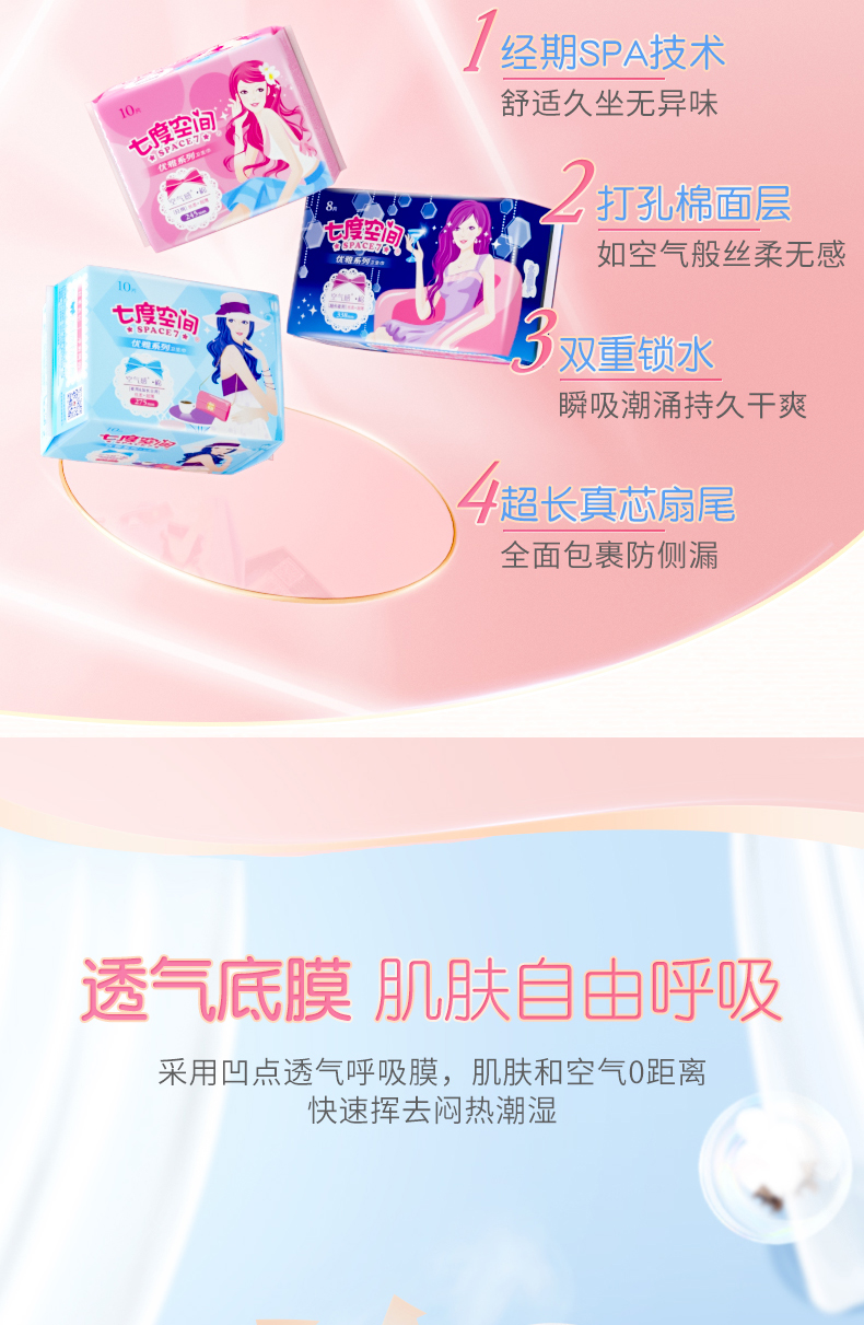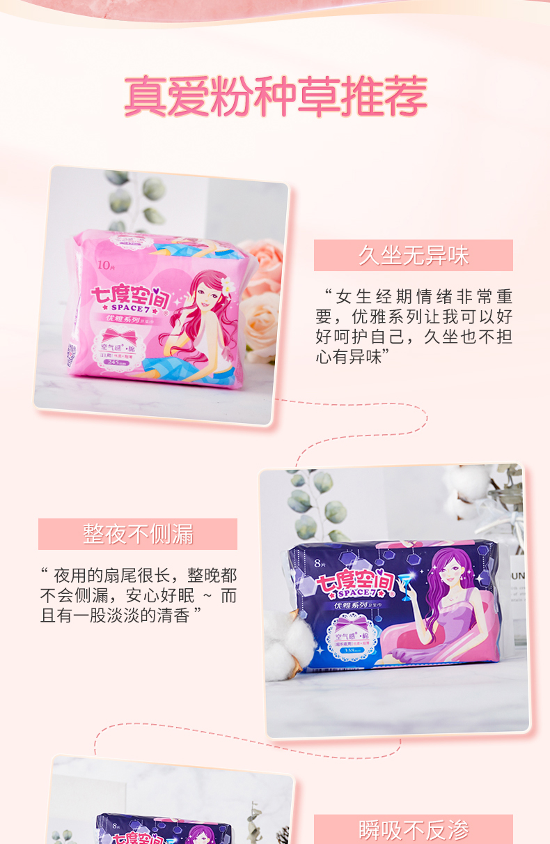 商品名称:七度空间优雅系列姨妈巾卫生巾338超长夜用组合整箱实惠官网正品