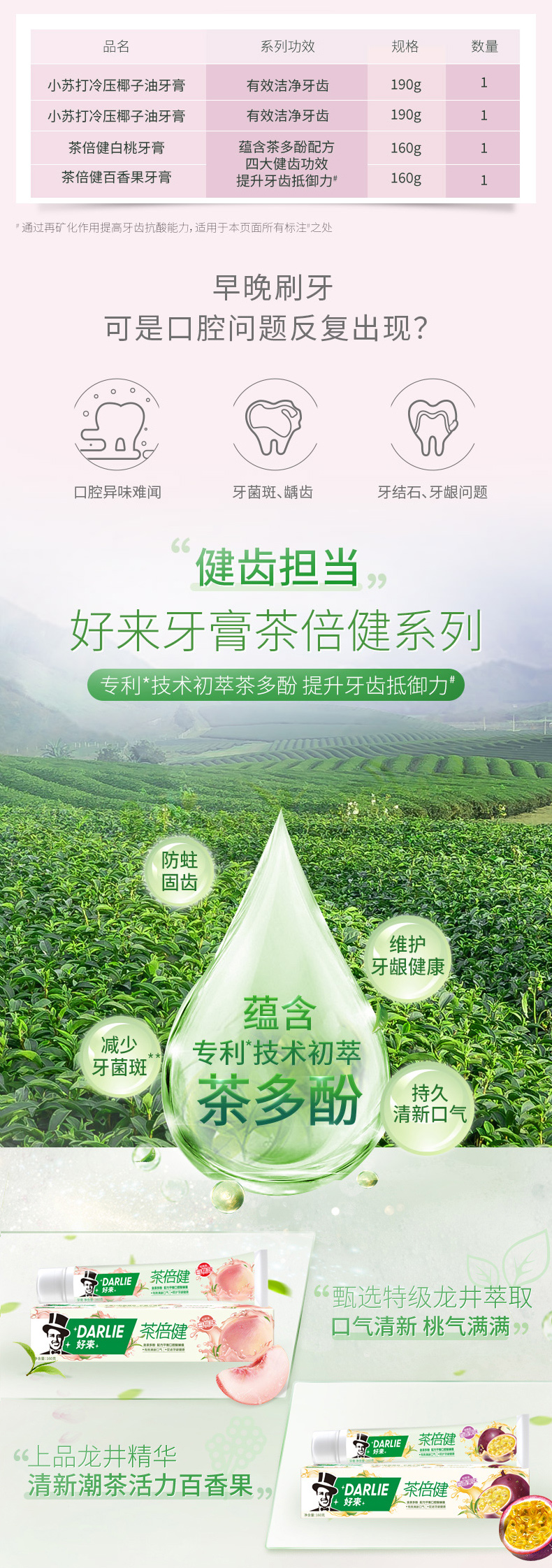 商品名称:DARLIE好来(原黑人)牙膏茶倍健初萃茶700g清口气平衡酸碱护龈洁齿