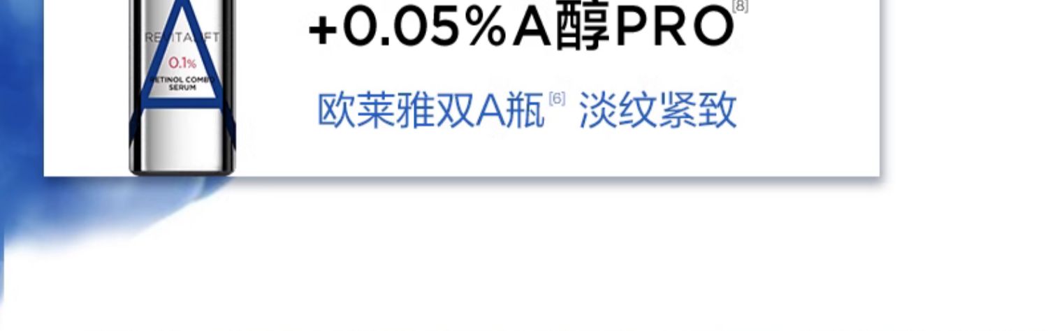 商品简介:【凑300-50满减,再凑美妆券1000-120,消费券150-120,极.致凑单可2,42元!买即送VC精华15ml+双A瓶15ml,等于额外到手一套中样套装】早C晚A新纪元,欧莱雅套装来袭!夜晚来袭,紧致抗皱,焕发肌肤新活力!日夜呵护,肌肤重现年轻光彩!一起开启早C晚A护肤新篇章!