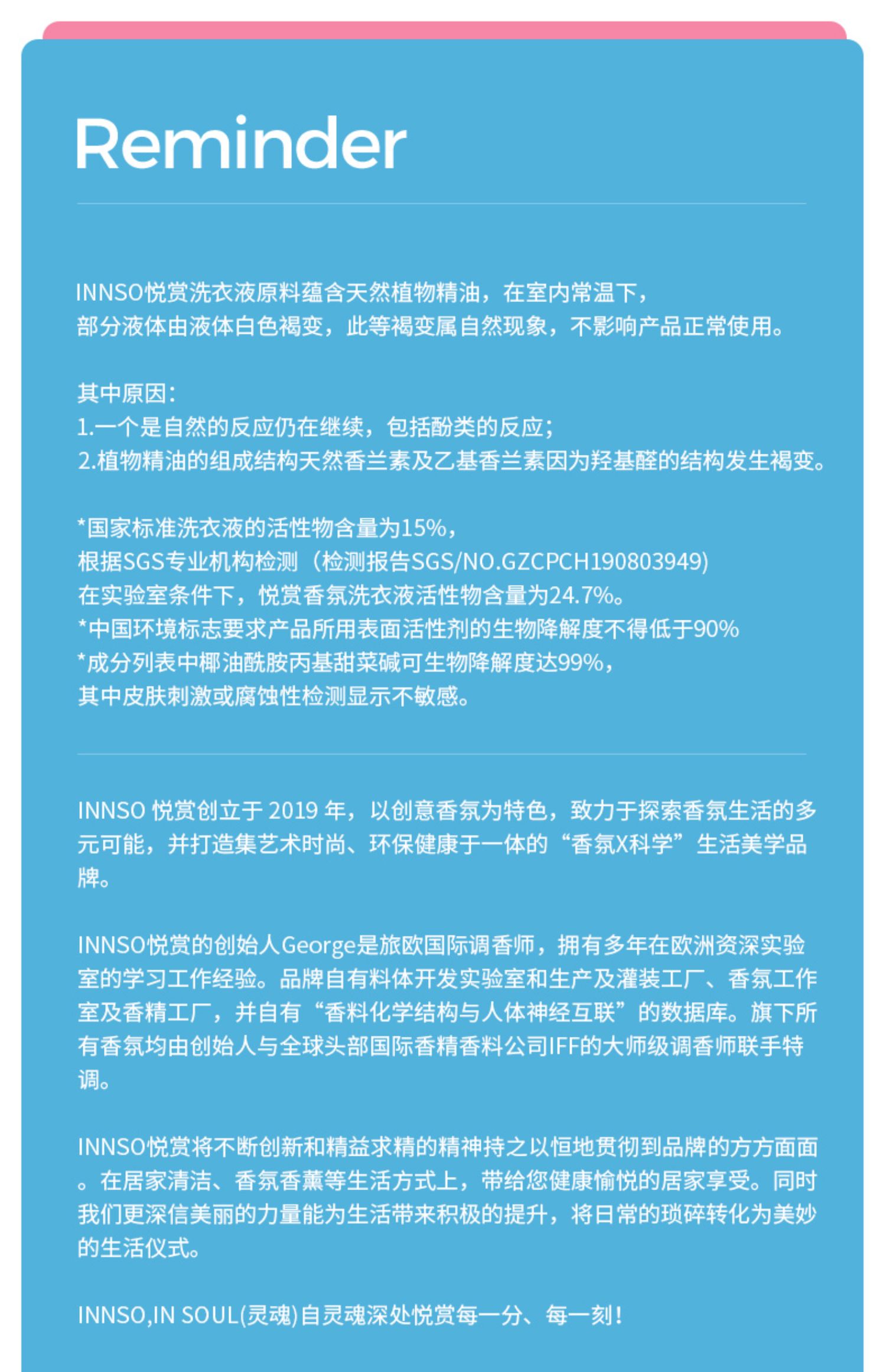 商品介绍:INNSO悦赏旗舰店香水洗衣液香味抗菌家庭装