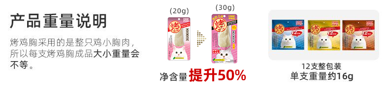 商品介绍:伊纳宝猫烤鸡胸肉30g*12支