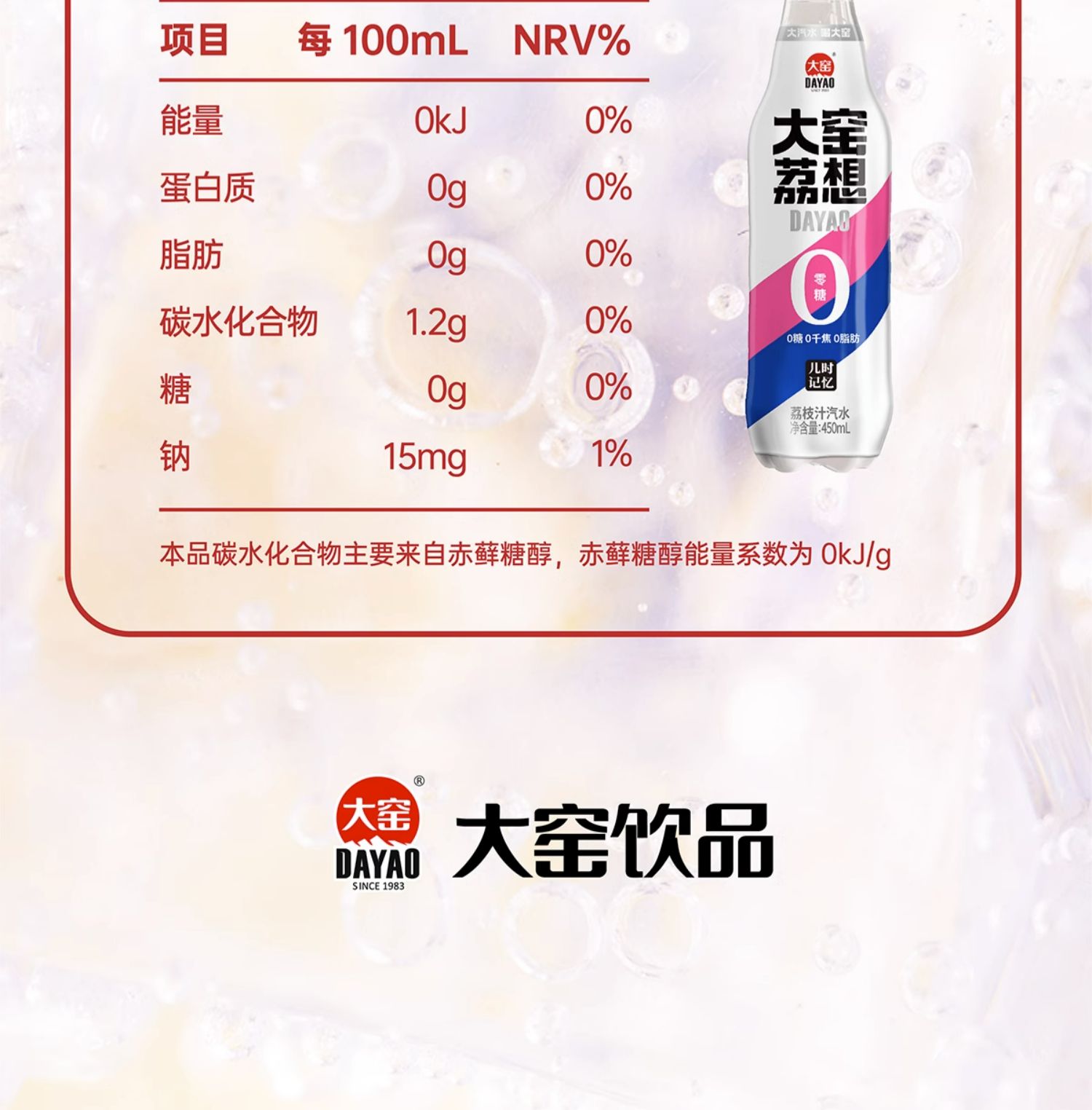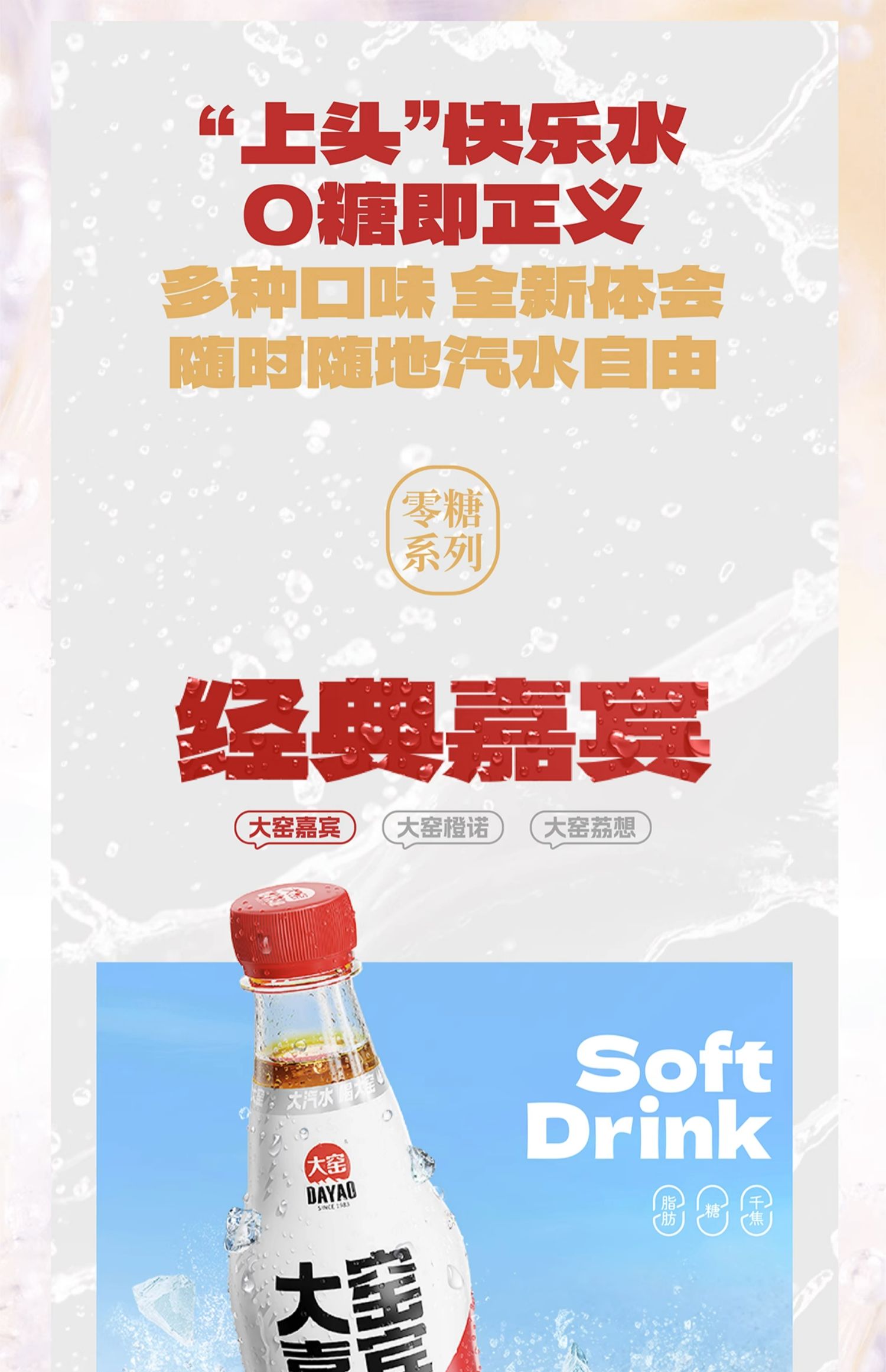 商品简介:大窑0糖0脂气泡水9瓶!【吴京代言】大窑气泡水!0脂!0糖!0卡!气泡绵密,果味十足,加冰更过瘾~时不时来上一杯,简直不要太爽~【赠运费险】