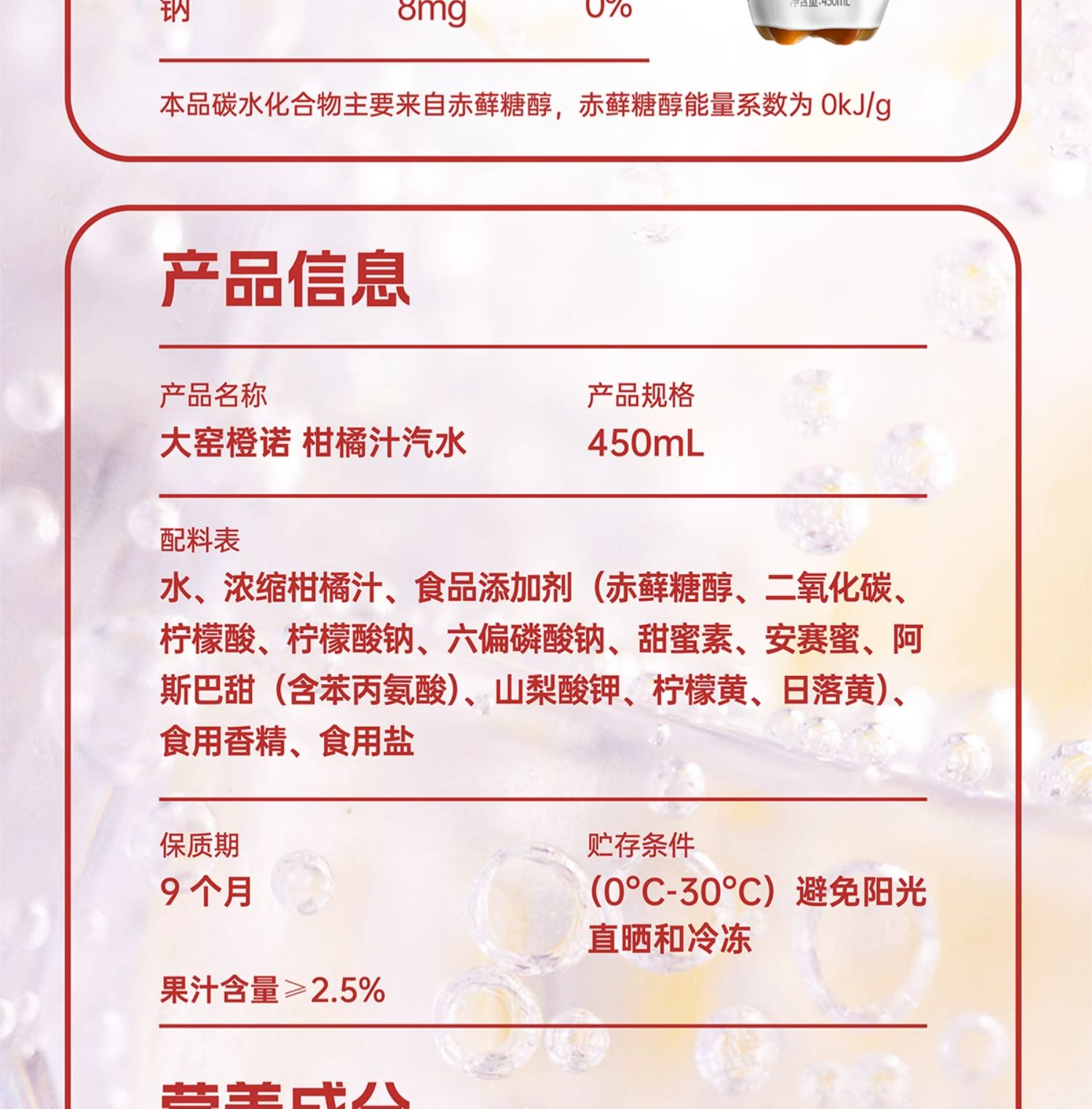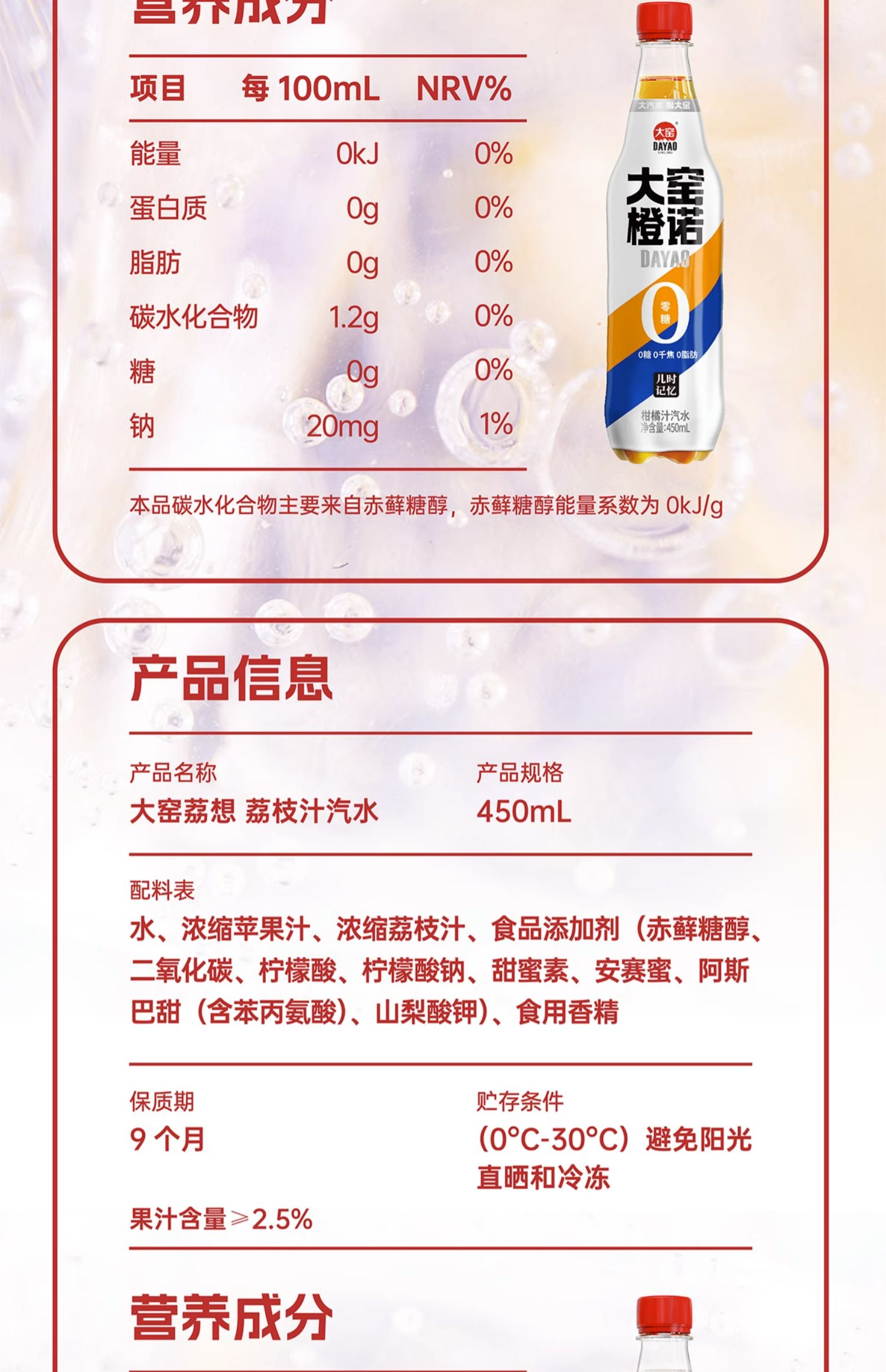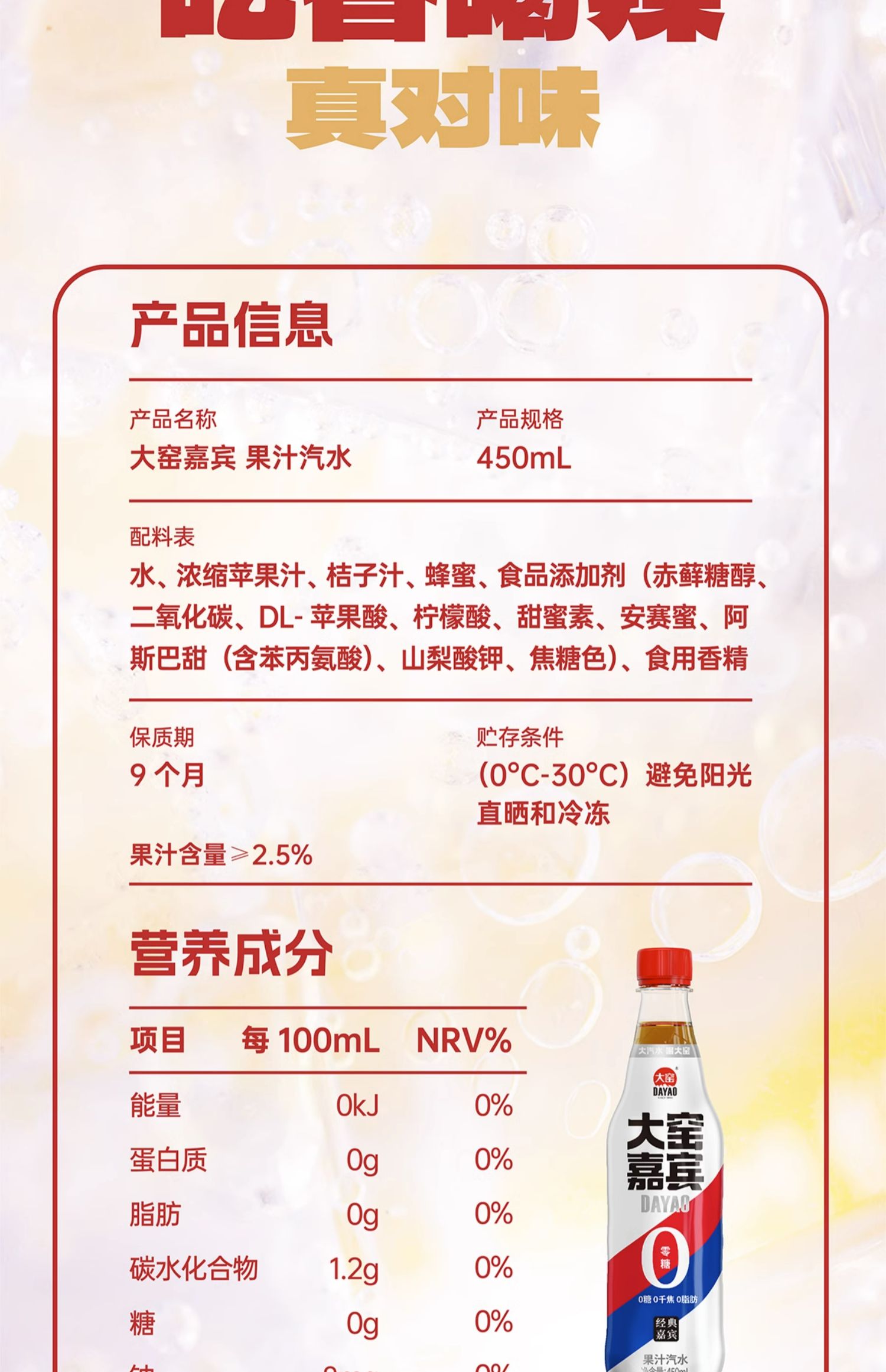 商品介绍:【吴京代言】大窑0糖汽水450ml*9瓶