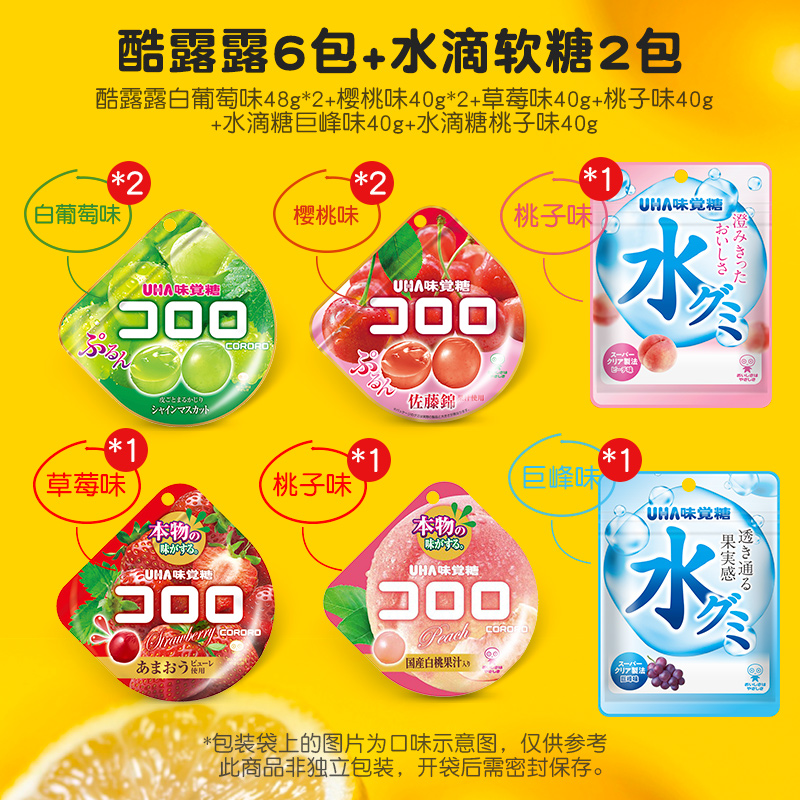 商品名称:悠哈味覚糖进口UHA酷露露果汁软糖爆浆水滴糖8包葡萄可乐休闲零食