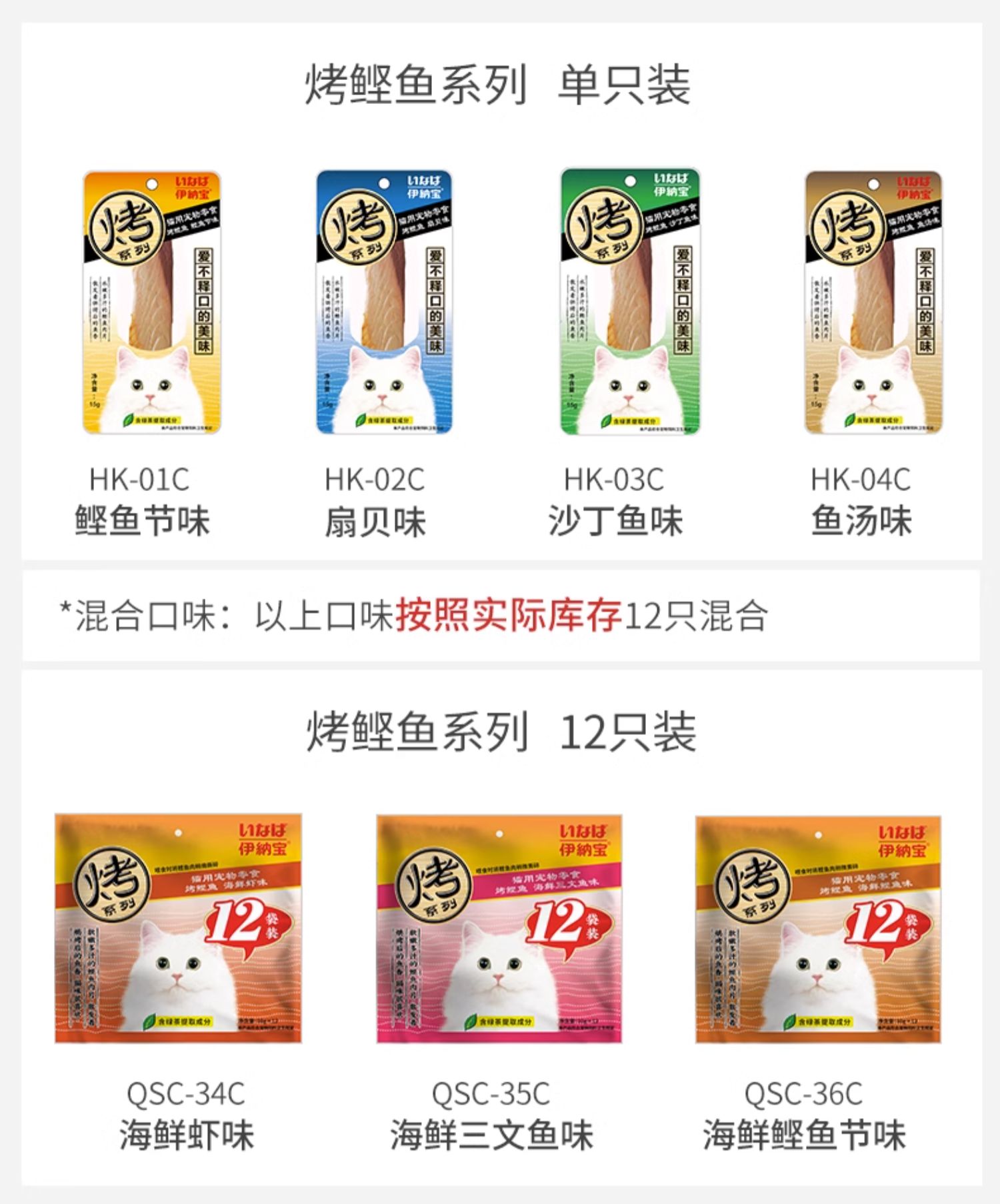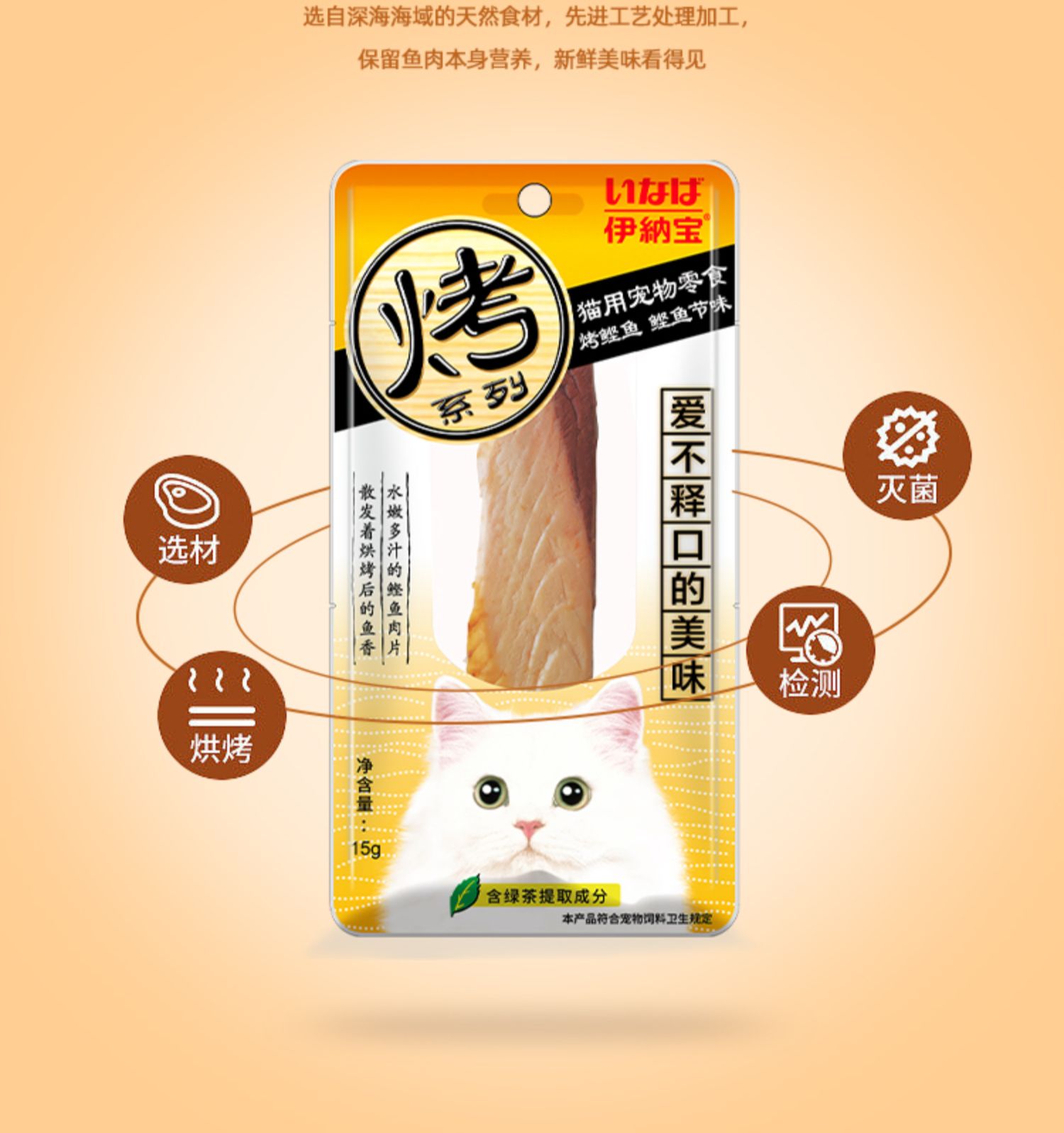 商品介绍:伊纳宝猫用烤鲣鱼15g*12支