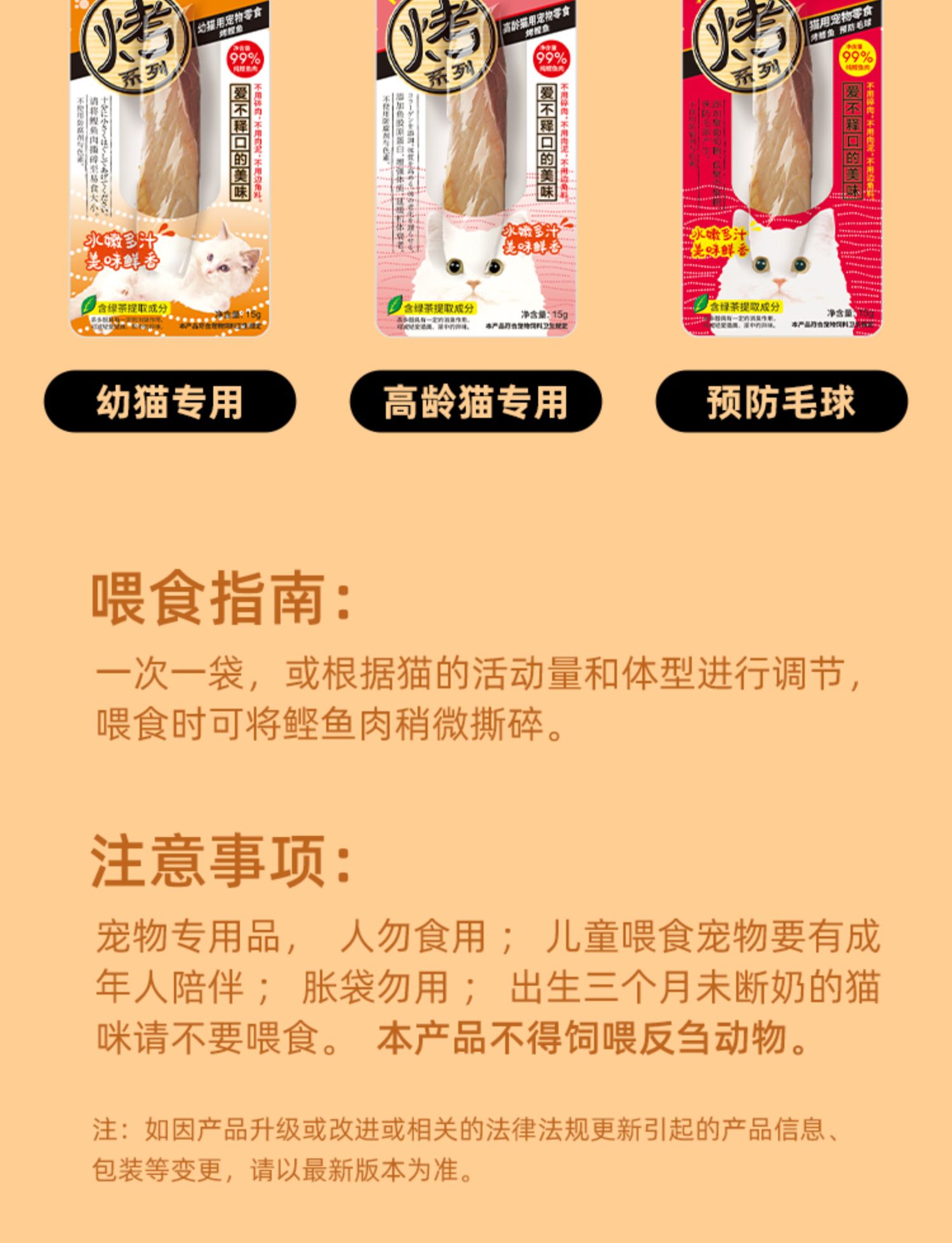 商品名称:伊纳宝猫零食烤鲣鱼条鸡胸肉猫咪专用鱼肉猫条肉干宠物猫粮小鱼干