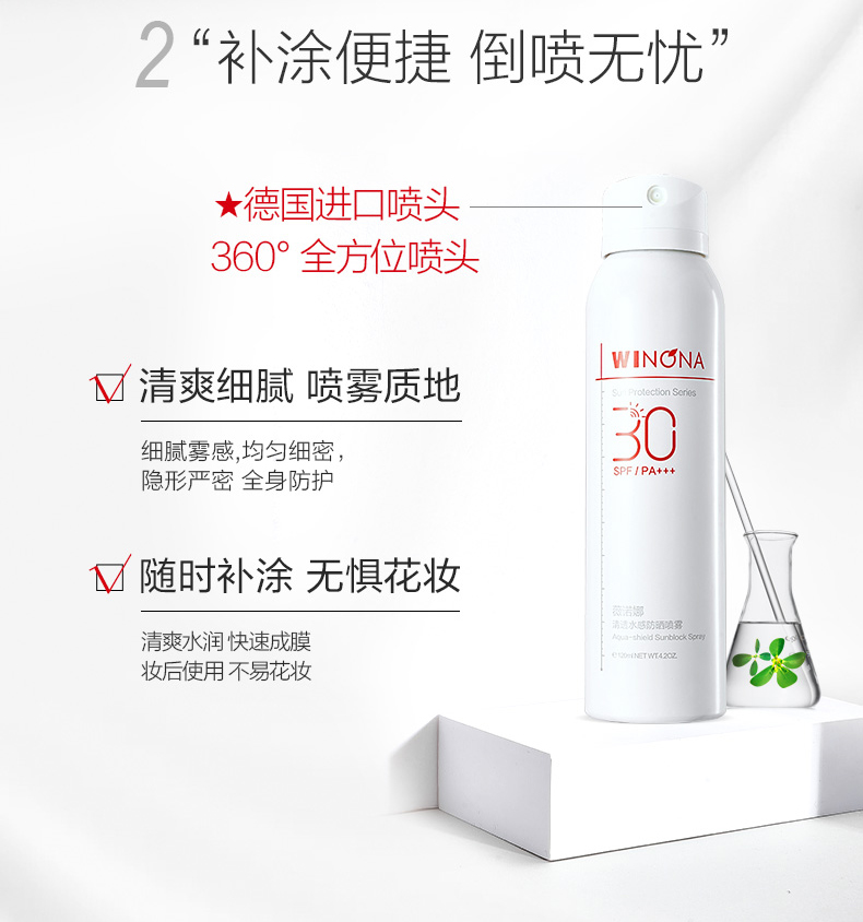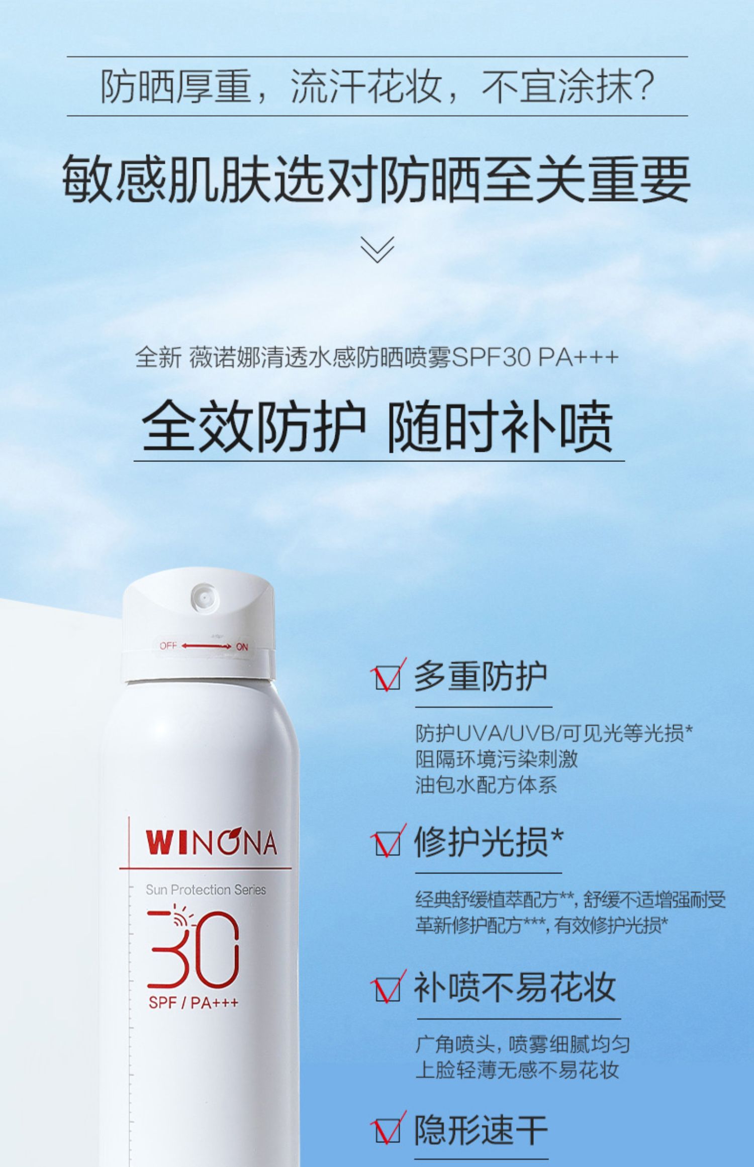 商品介绍:薇诺娜清透水感防晒喷雾SPF30PA+++