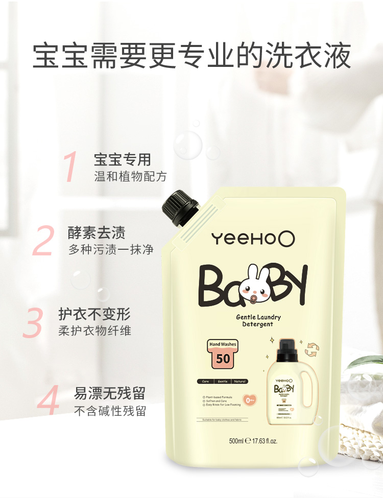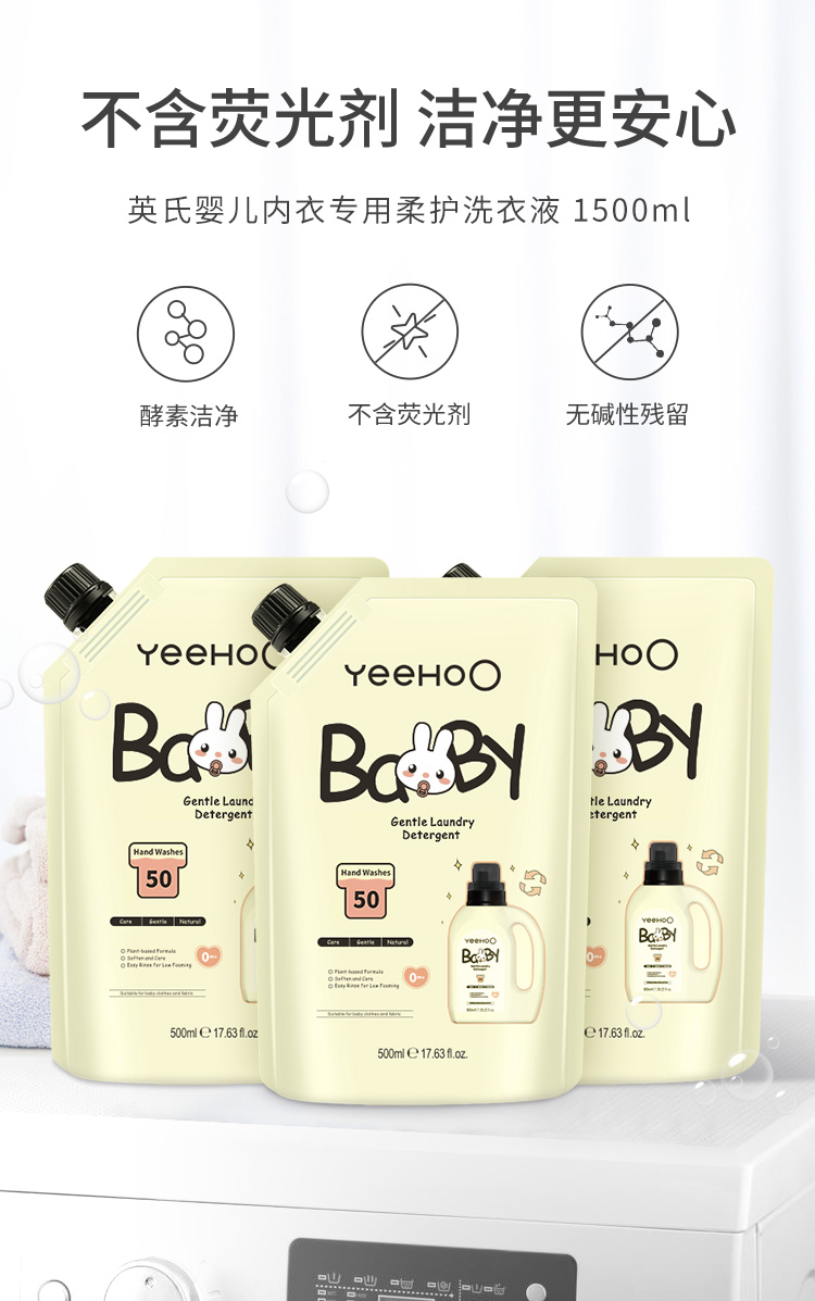 商品介绍:【首单福袋2元】英氏婴儿洗衣液3袋共1.5L