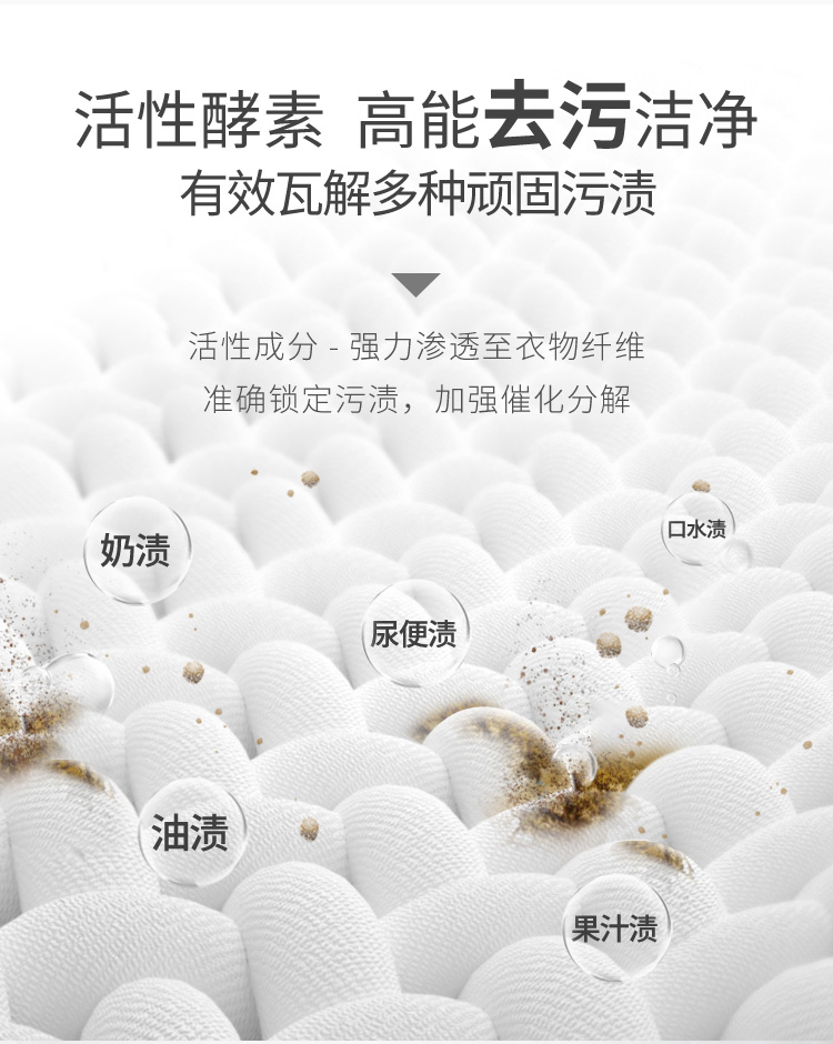 英氏宝宝温和植物配方,酵素去渍,多种污渍一抹净,护衣不变形,柔护衣物纤维,易漂无残留