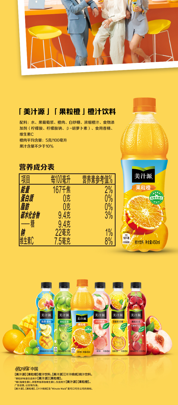 商品名称:虞书欣代言美汁源果粒橙果汁果味饮料450ml*12瓶含维C可口可乐