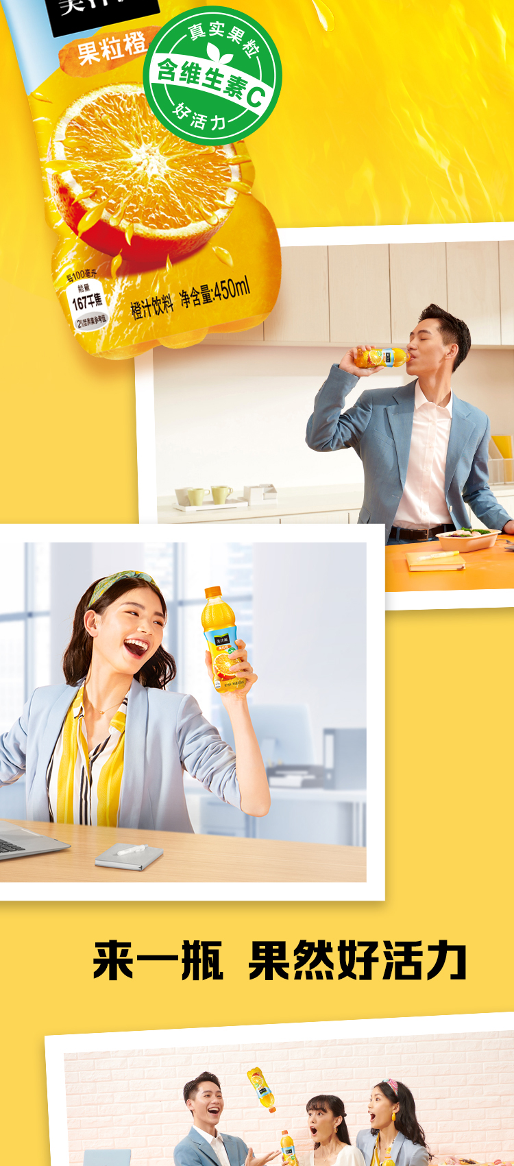 商品介绍:[一瓶2.4元起]美汁源果粒橙450ml*12瓶