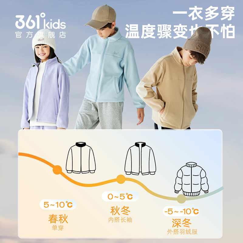 商品介绍:361秋冬新款儿童摇粒绒外套