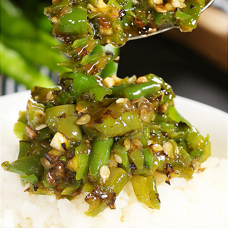 商品名称:军杰烧椒酱218g×1瓶炭烤青椒虎皮辣椒酱湖南特色农家下饭菜拌饭