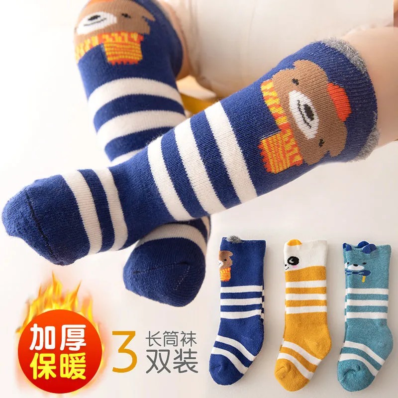商品介绍:0-3岁宝宝秋冬款加厚毛圈长筒袜3双