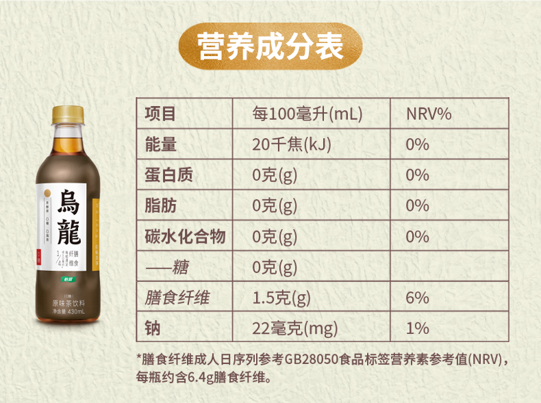 商品名称:怡宝茶饮料乌龙茶430ml*15支/箱低糖茶