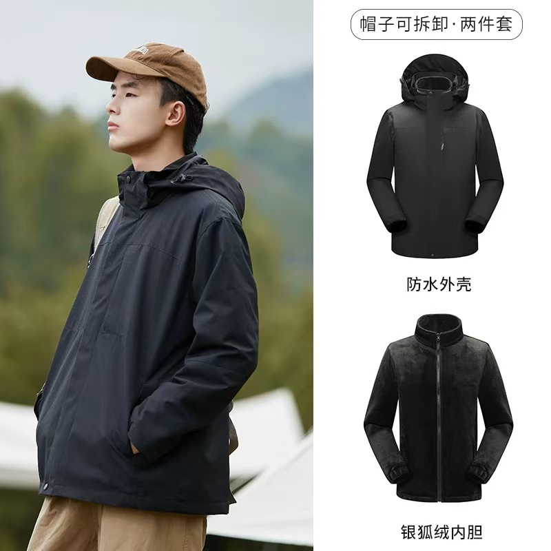 商品名称:森马集团GLM2024新款冲锋衣三合一男加绒加厚防风防水登山服外套