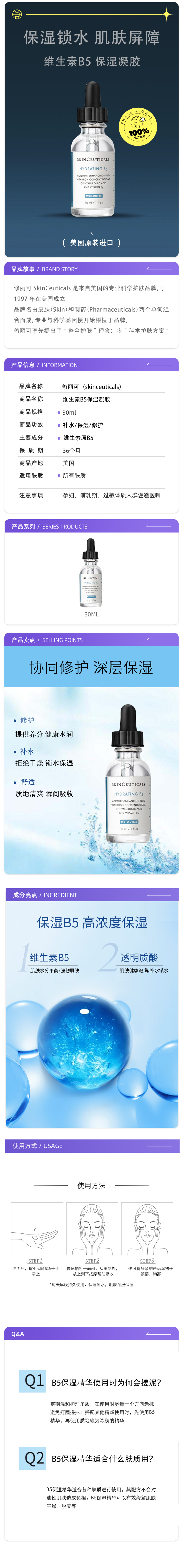 商品介绍:美国修丽可维生素B5保湿凝胶30ml