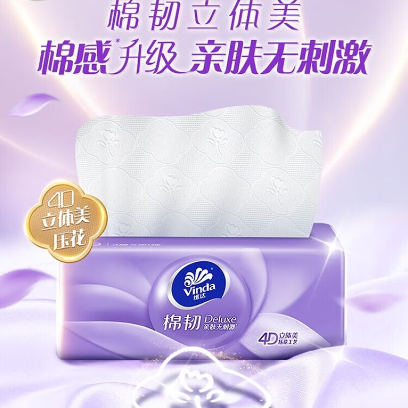 商品名称:维达棉韧抽纸100抽30包整箱加大厚S码家用卫生纸餐巾纸立体美纸巾