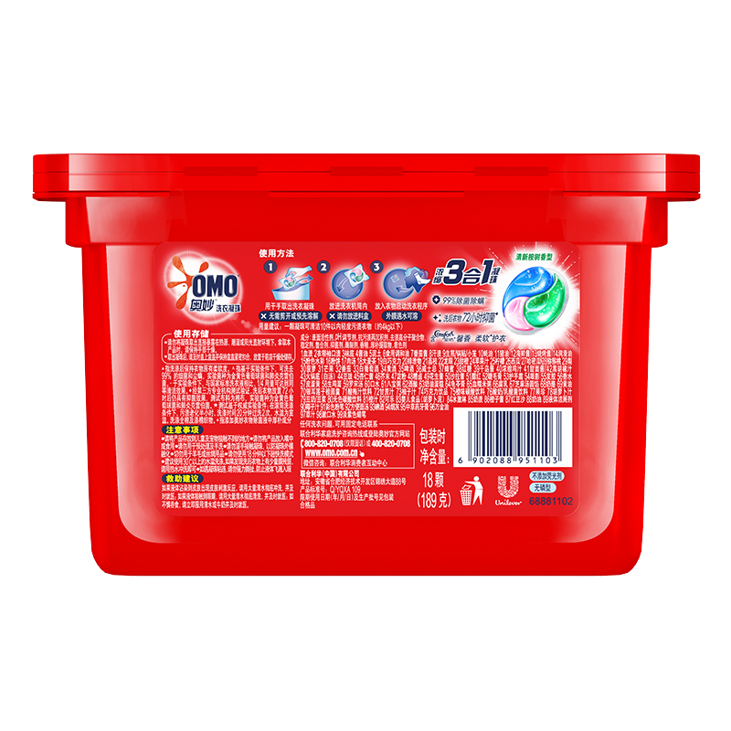 商品名称:奥妙三合一清新桉树洗衣凝珠18颗*4盒抑菌洁净护衣