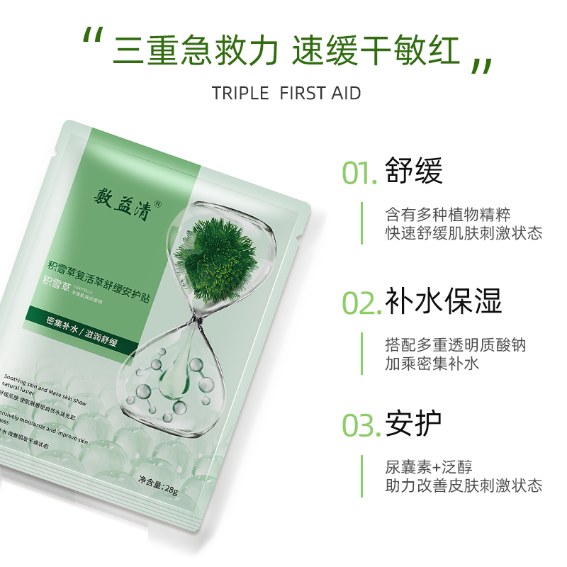 商品名称:敷益清积雪草舒缓干燥保湿补水泛红屏障肌肤敏感贴片面膜男女学生