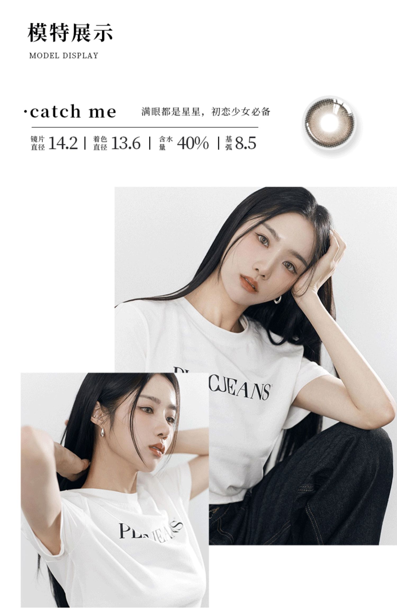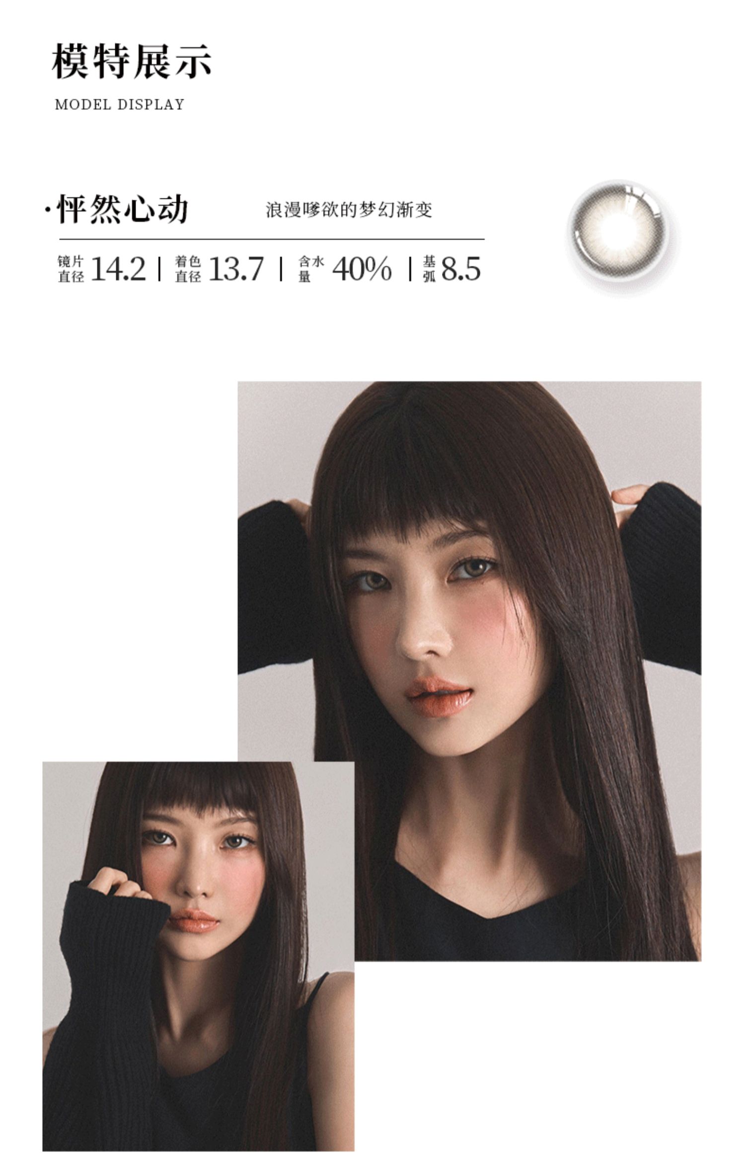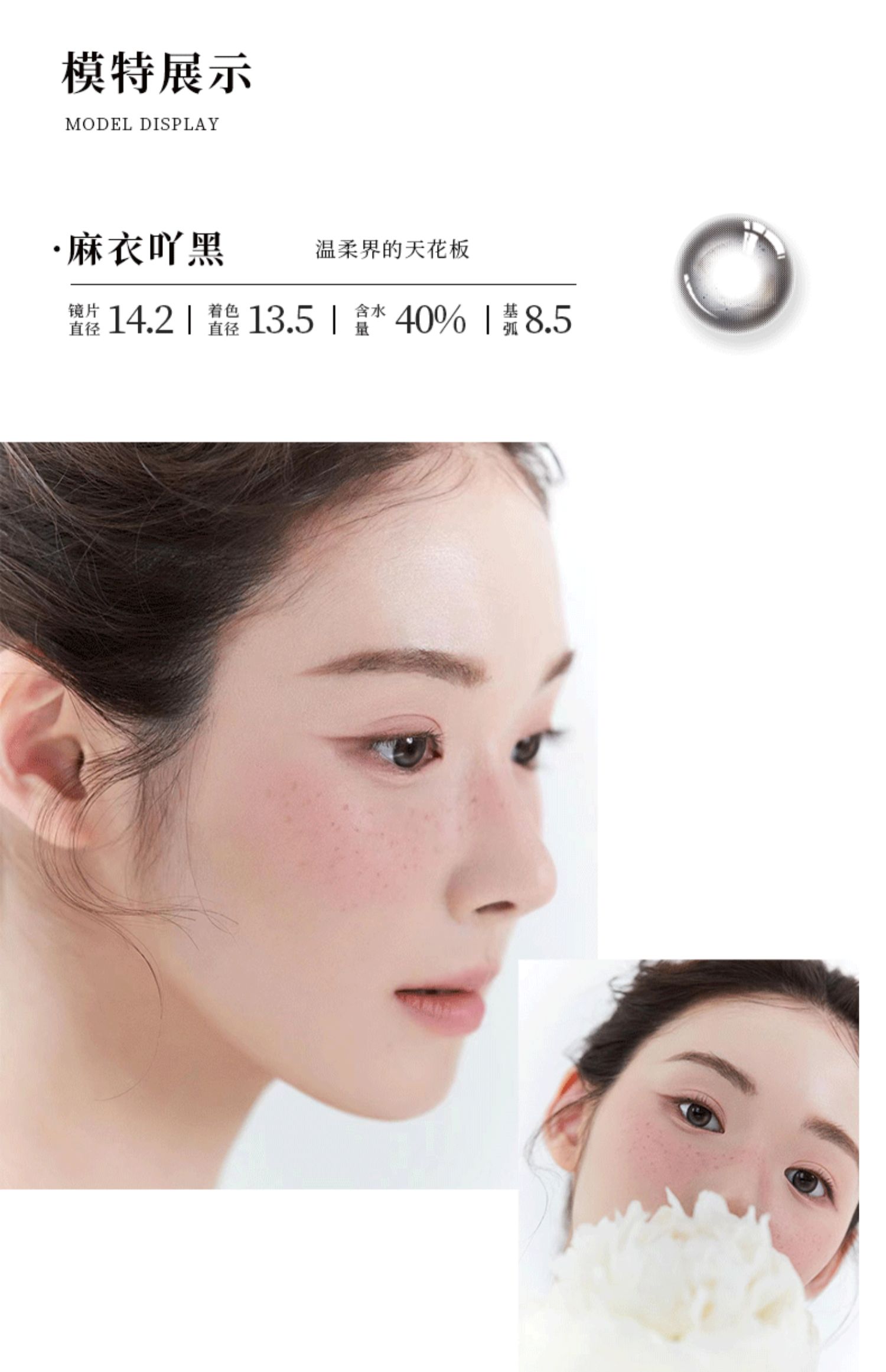 商品简介:混血风格彩色隐形眼镜,欧盟和国标双认证,戴上让眼部深邃,仙气飘飘,含水量40%,水润不易干眼,贴合眼球不易掉落,材质柔软无异物感!