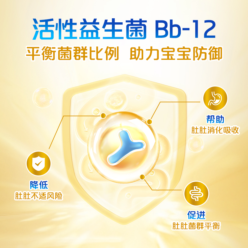 HMO与益生菌:添加5种HMO和益生菌,有助于维护宝宝肠道健康,提升免疫力。