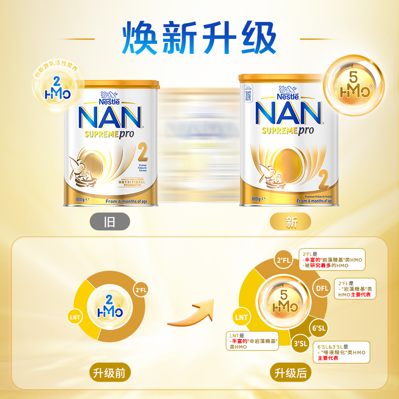 商品介绍:雀巢超级能恩5HMO适度水解蛋白奶粉2段800g