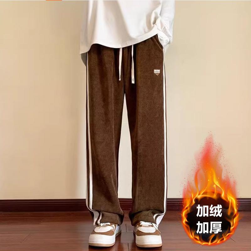 商品名称:FR情侣款条纹灯芯绒裤秋冬季加绒加厚运动长裤宽松直筒休闲裤