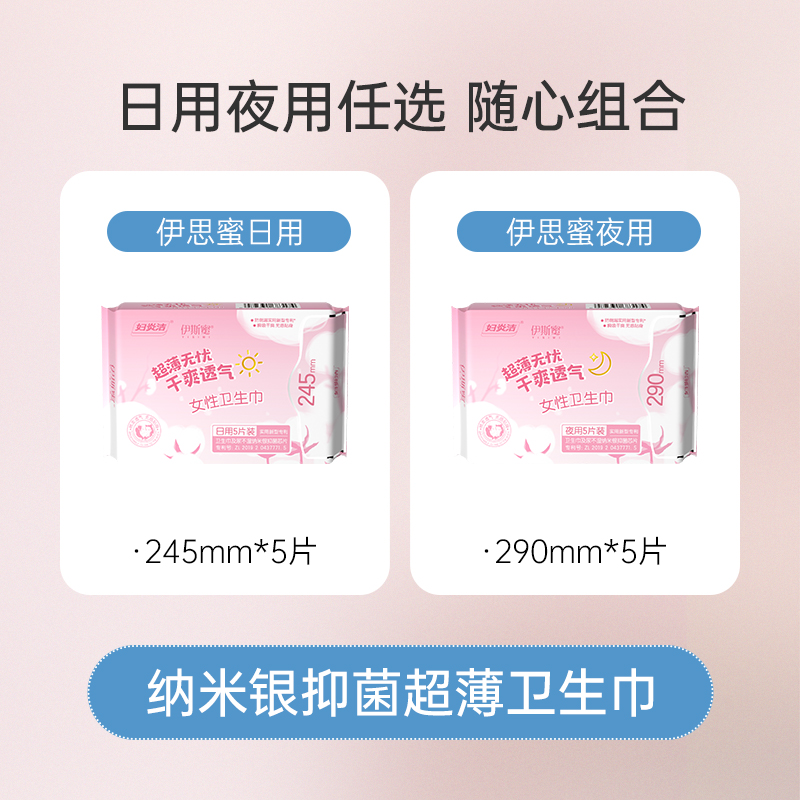 商品名称:【34.9任选10件】妇炎洁卫生巾日用夜用日夜组合装超薄抑菌姨妈巾