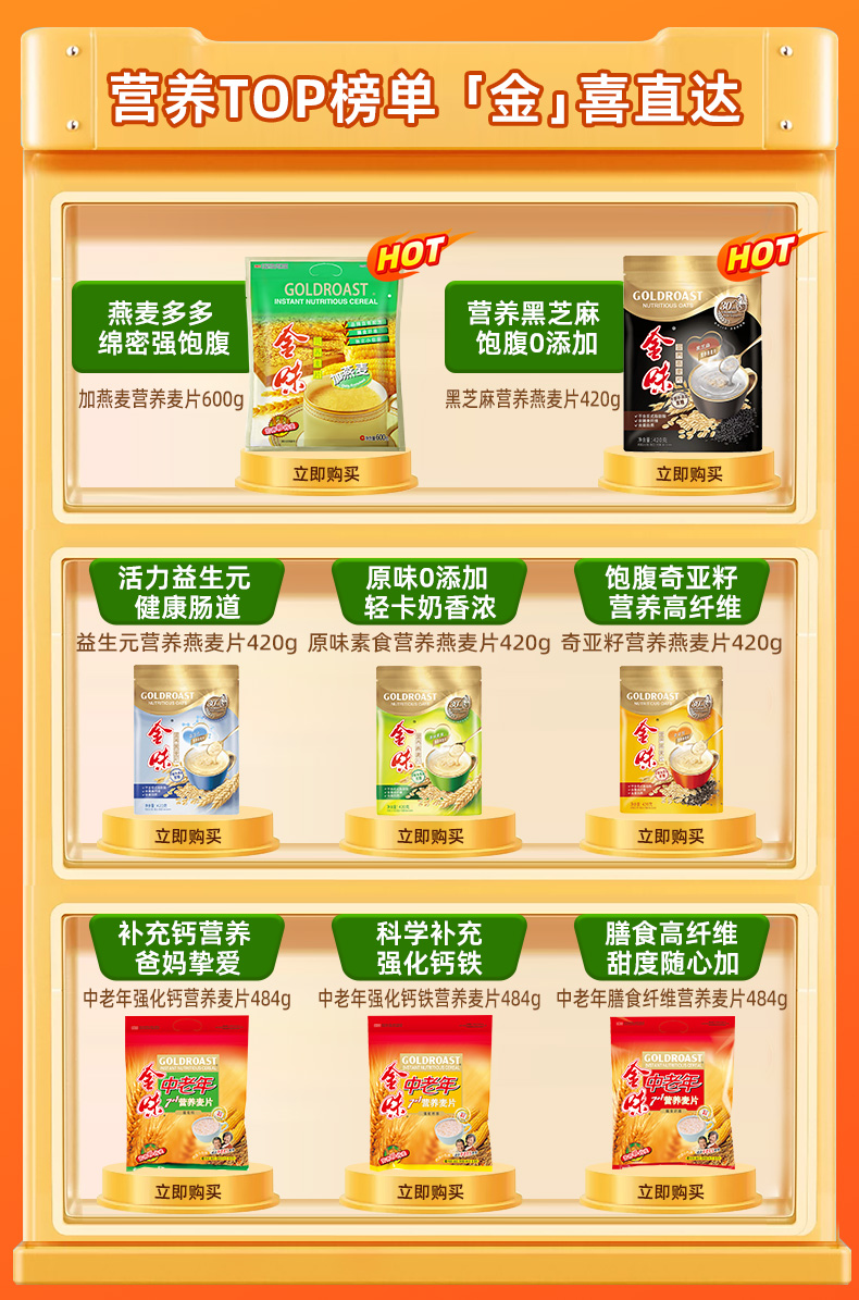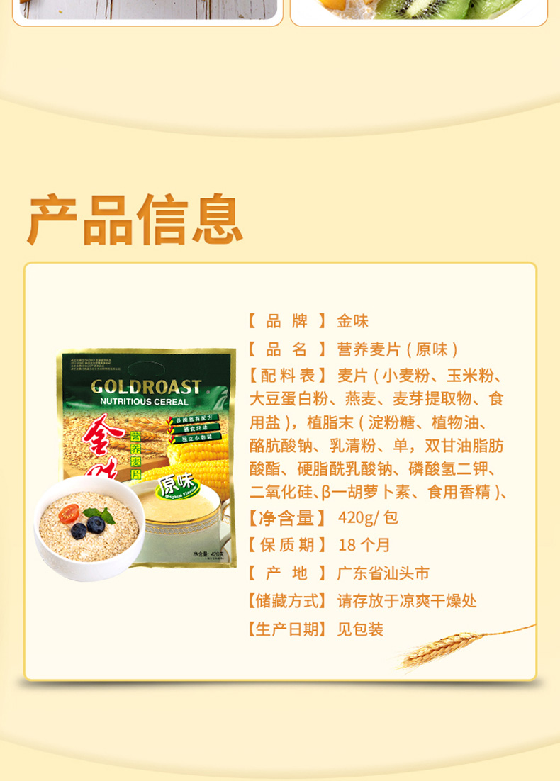 商品介绍:金味冲饮麦片原味营养麦片420g