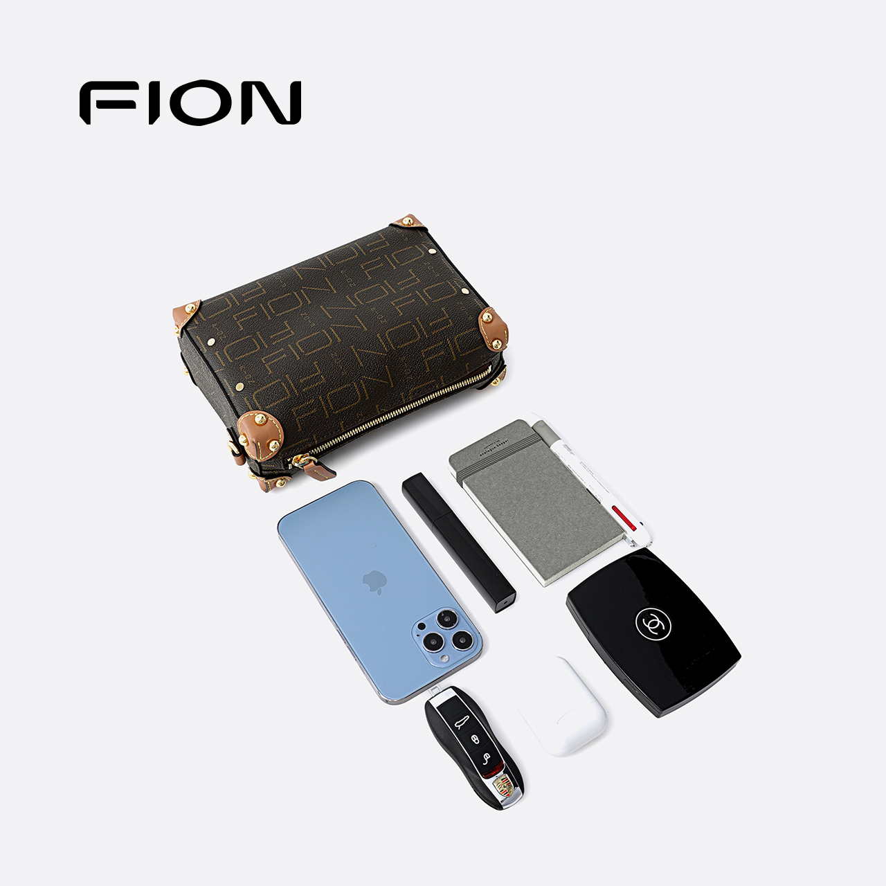 商品名称:Fion/菲安妮日常通勤软盒子包高级感经典老花百搭单肩斜挎包包女